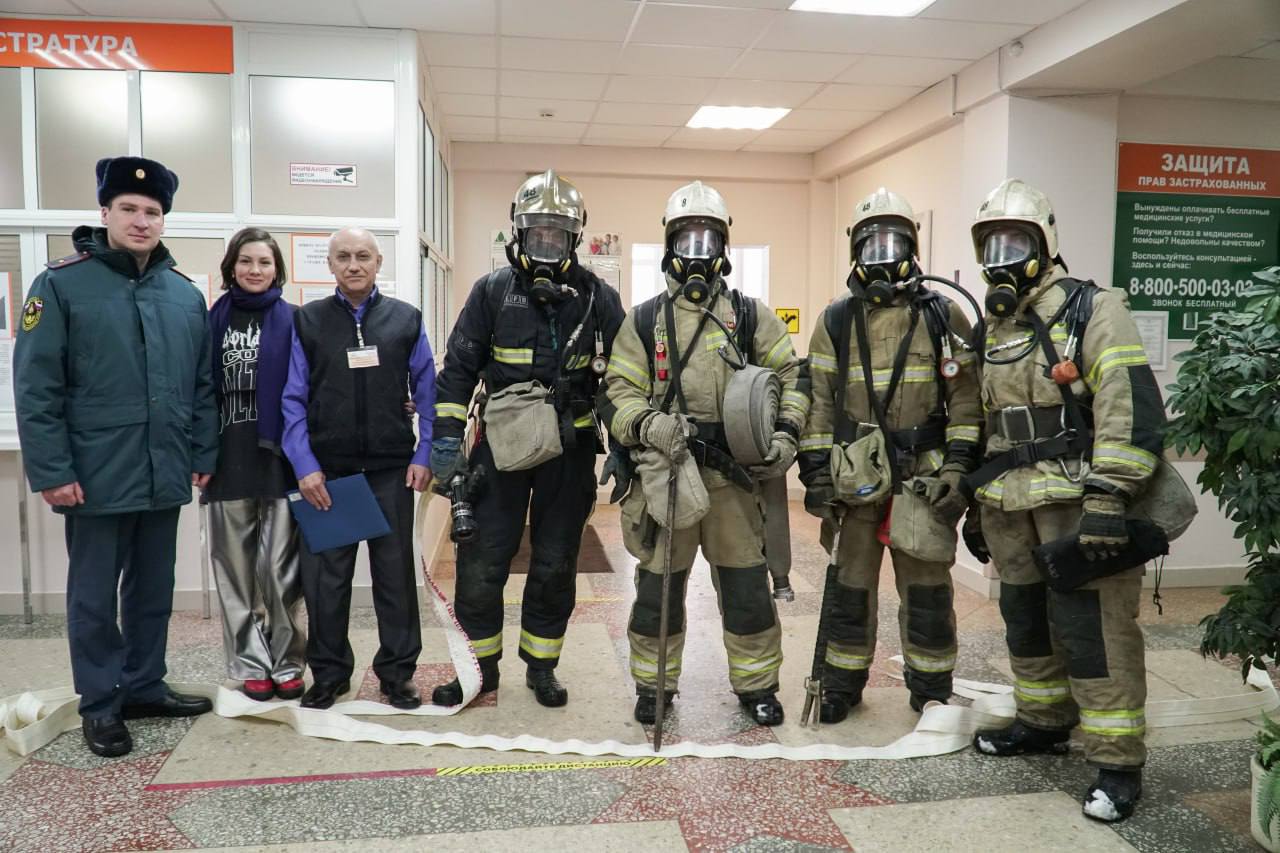 Еще одно учение - пожарно-тактическое. Целью проведенной тренировки было определение степени готовности администрации больницы к действиям при возможном возникновении пожара в здании с пребыванием людей, а также тренировка персонала больницы.