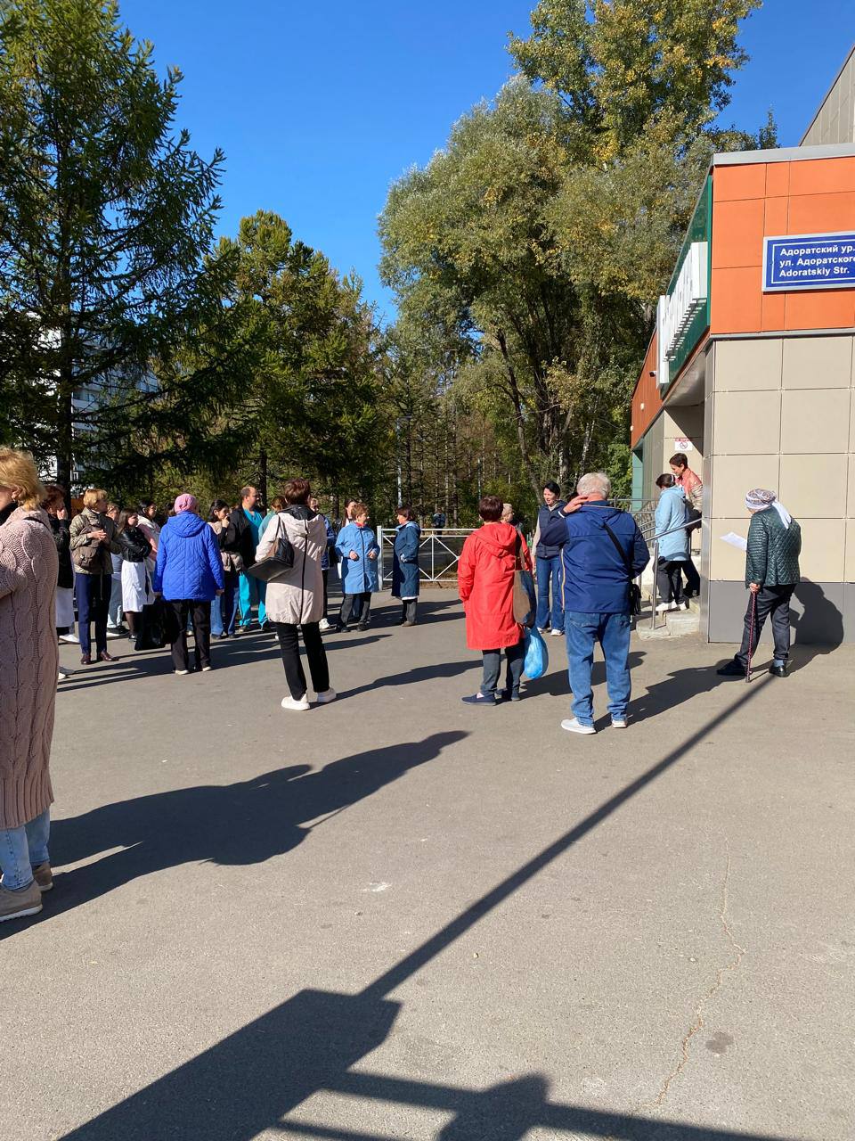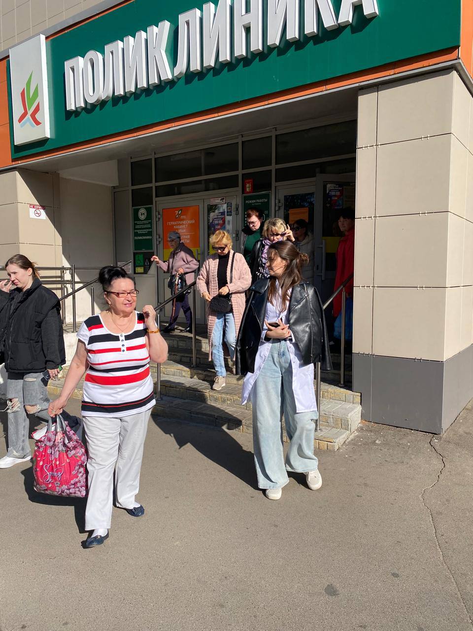 Персонал поликлиники и пациенты после объявления угрозы воздушной опасности по громкой связи спустились в укрытие.
