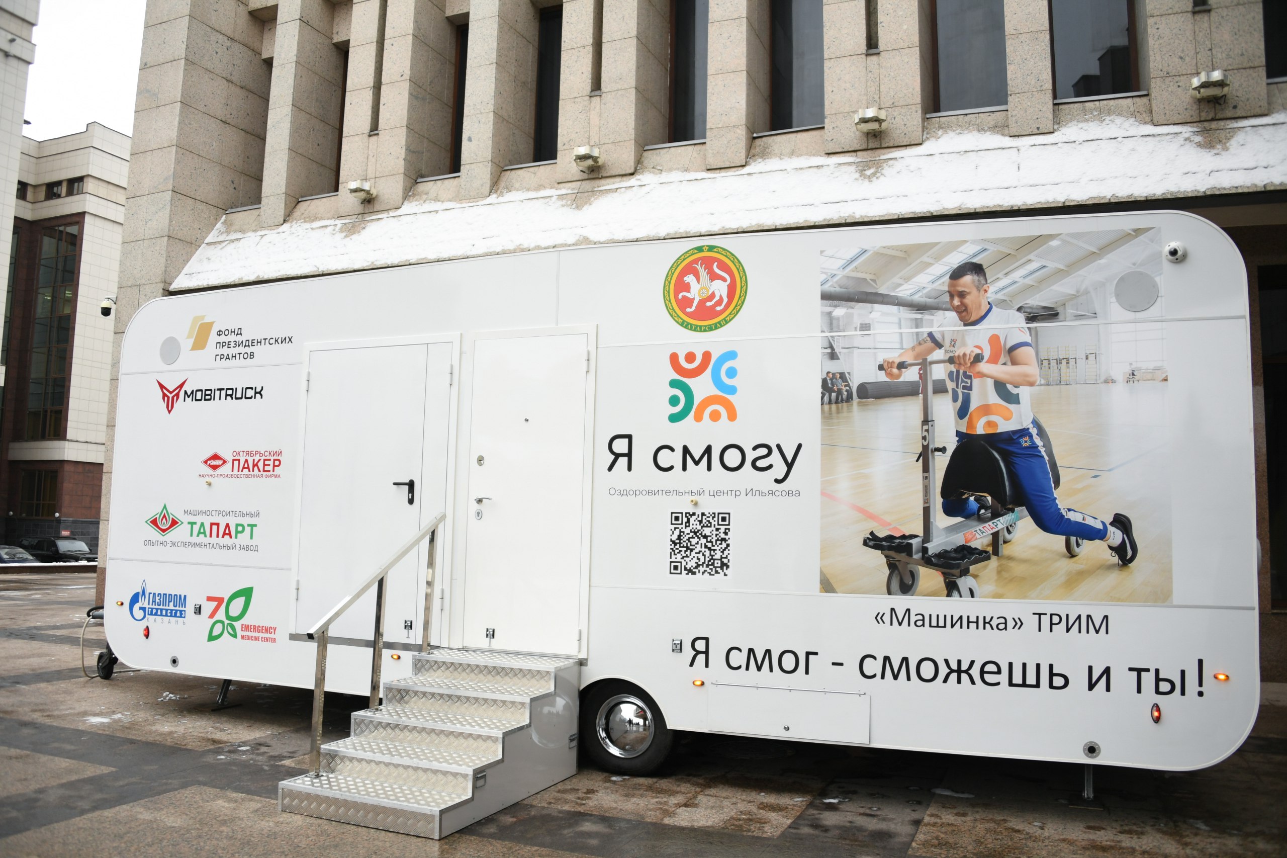 Сегодня Раису Татарстана Рустаму Минниханову презентовали мобильный комплекс «Центр реабилитации на колесах», разработанный для реабилитации людей с нарушением опорно-двигательного аппарата. О проекте рассказал его автор — Марат Ильясов.