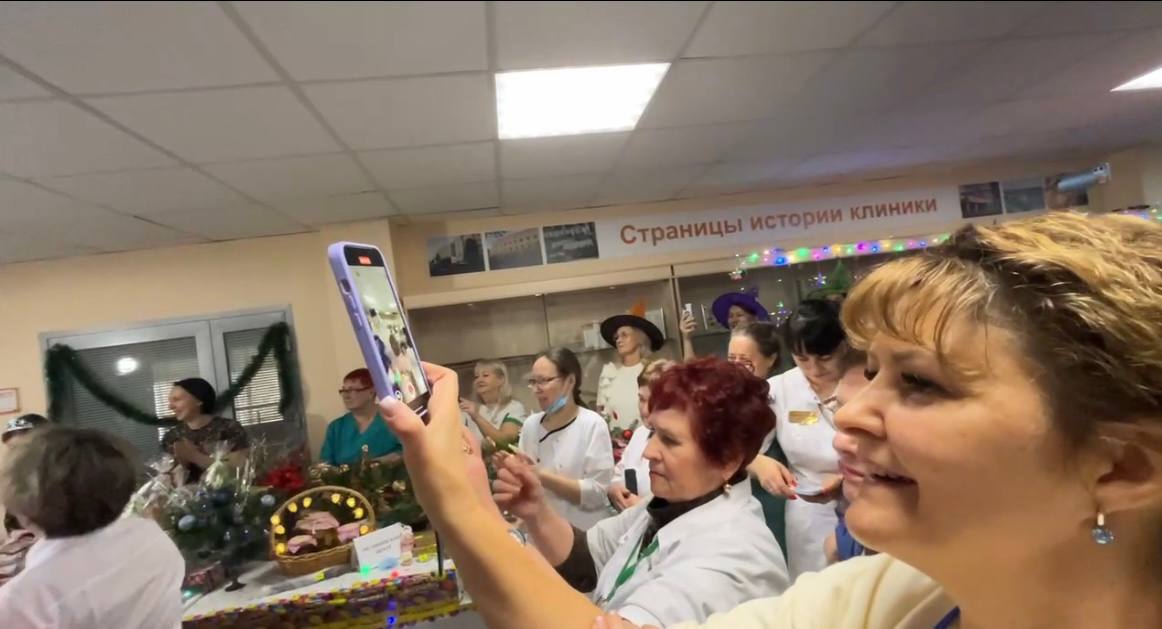 С раннего утра фойе клиники украсили столы с угощениями и поделками, выполненными руками медиков.