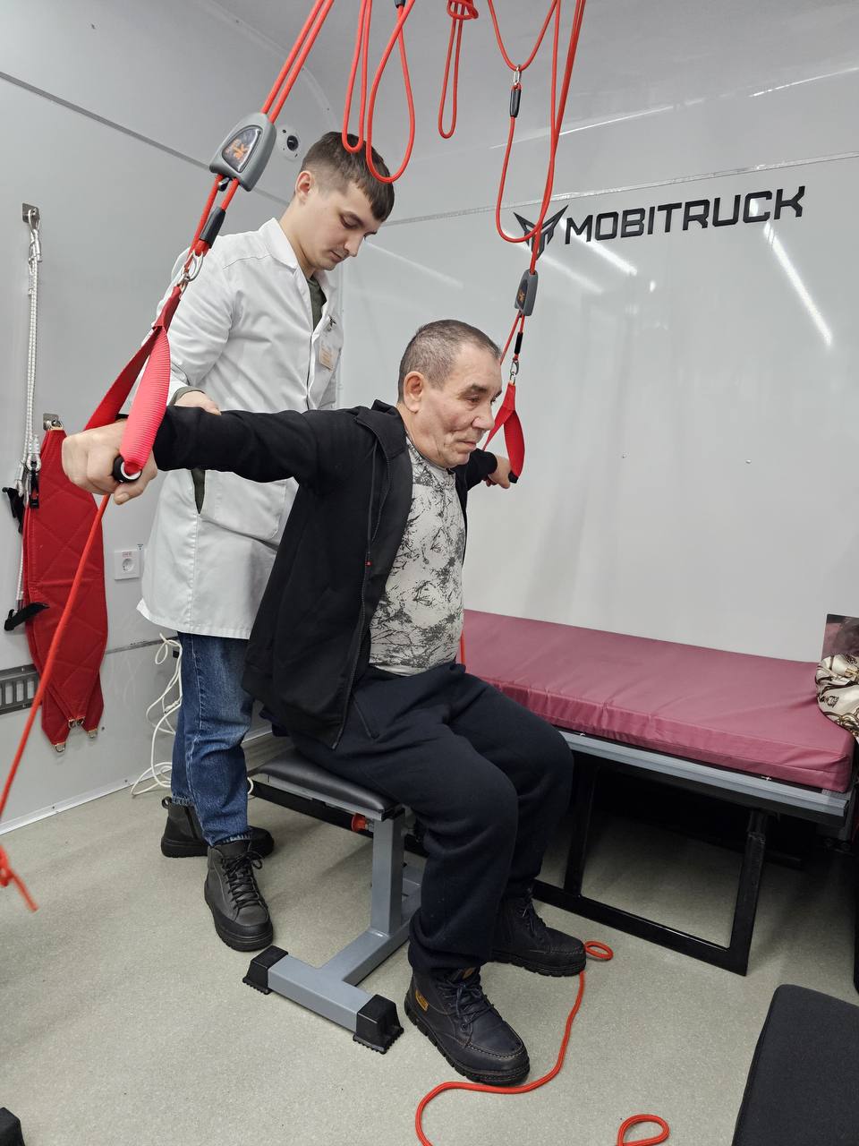 Глава реабилитационного центра «Я смогу» Марат Ильясов когда-то сам прошел сложный курс восстановления после автомобильной аварии. Врачи говорили, что он не сможет даже сидеть, но мужчина не сдался и начал тренировки. Потом разработал собственную программу и придумал тренажеры, а чтобы охватить как можно больше людей, создал специальный комплекс на колесах.