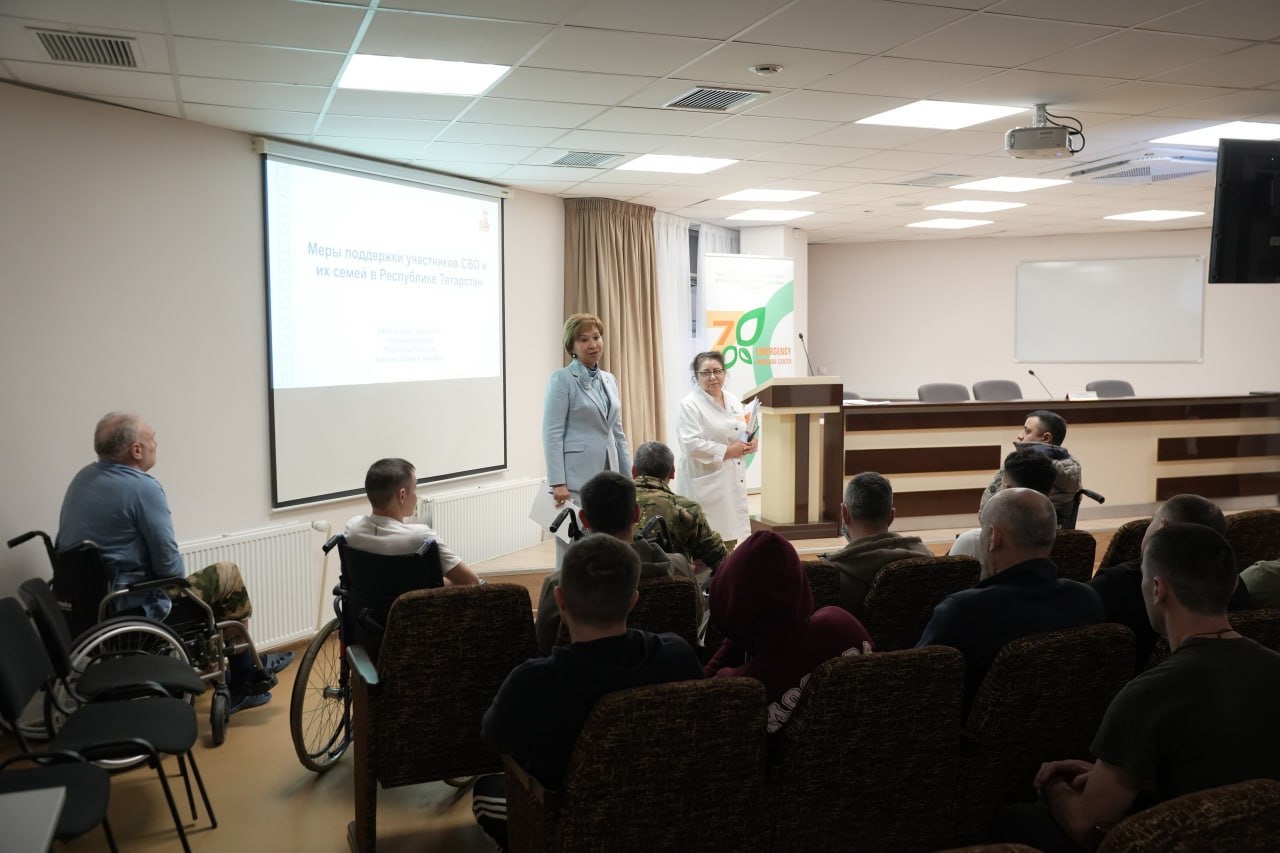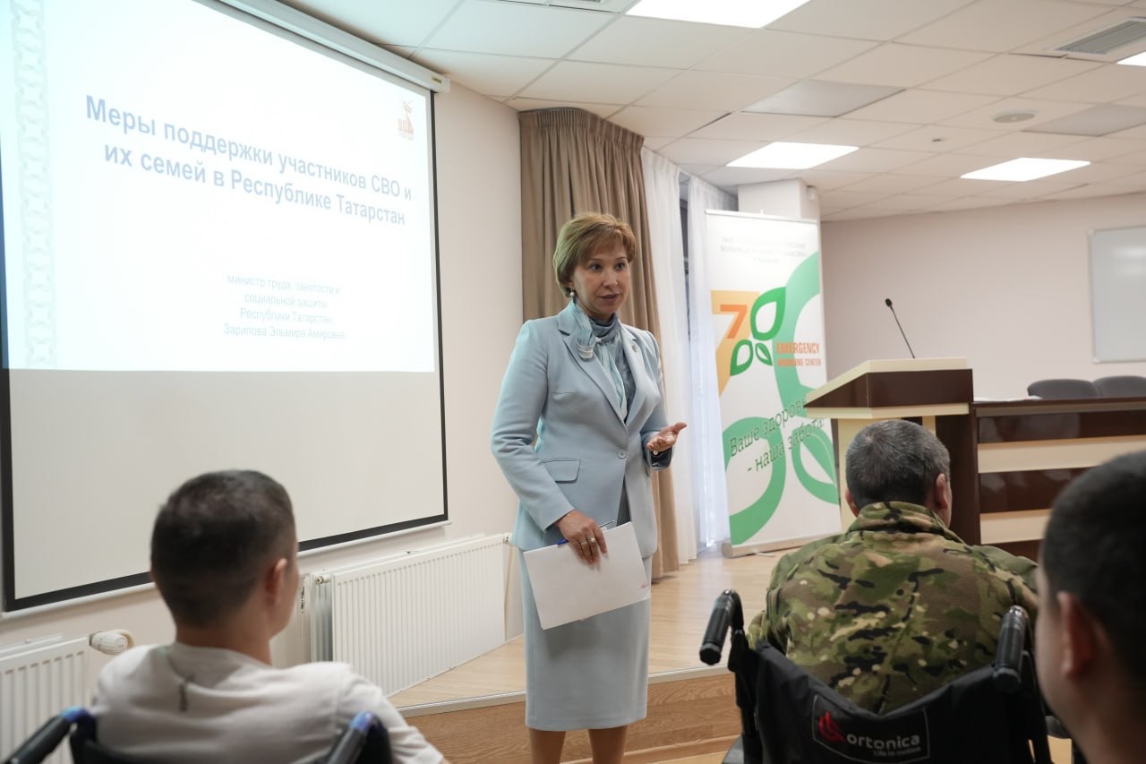 В седьмой городской больнице Казани министр труда, занятости и социальной защиты Татарстана Эльмира Зарипова встретилась с бойцами СВО