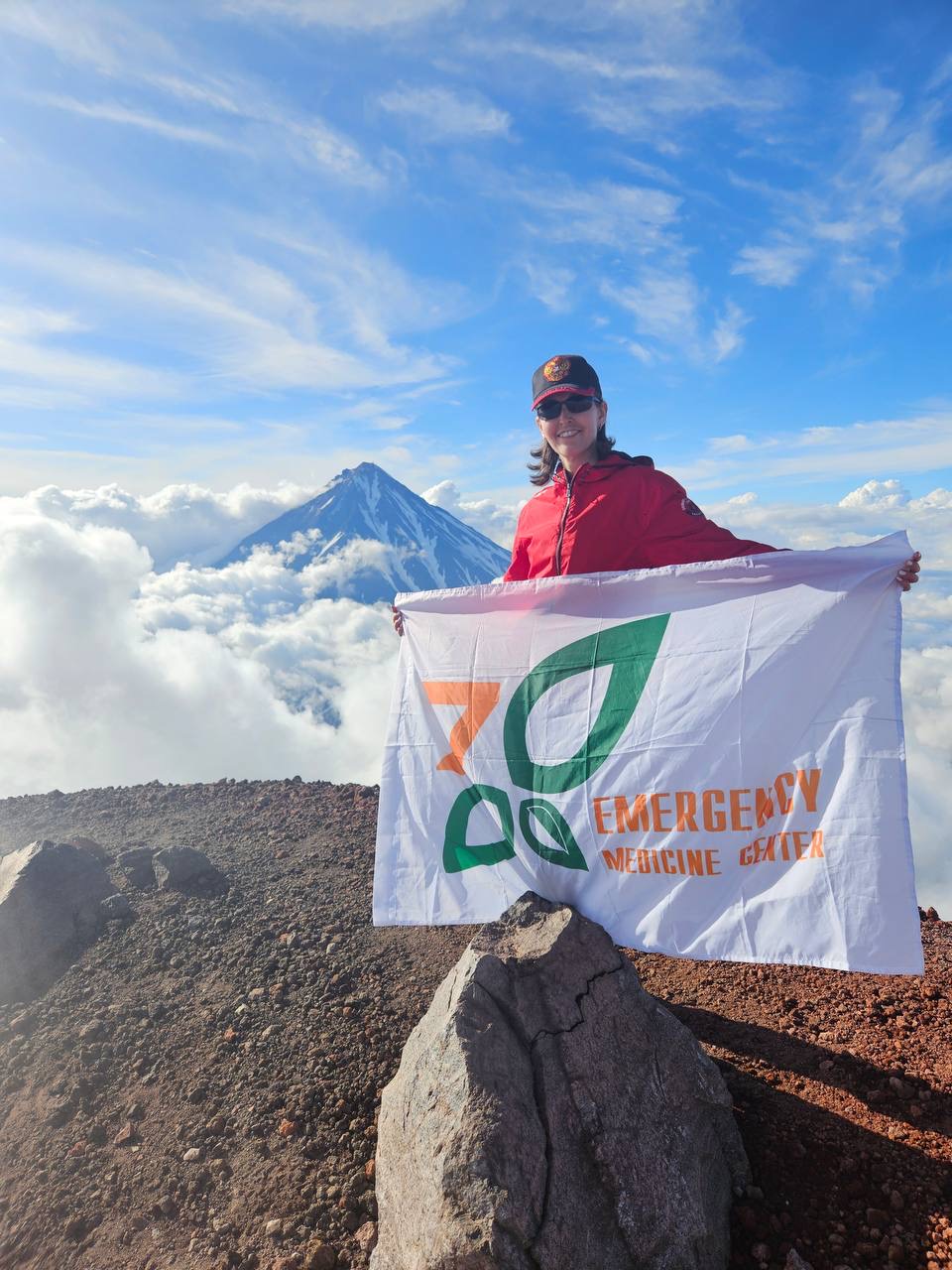 Буквально на прошлой неделе флаг ГКБ№7 совершил удивительное путешествие на Камчатку. Несмотря на серию землетрясений (от 2 до 8 баллов), врачу-кардиологу кардиологического отделения №3, Марие Александровне Собановой удалось покорить действующие вулканы Авачинский (2741 м) и Горелый (1829 м).