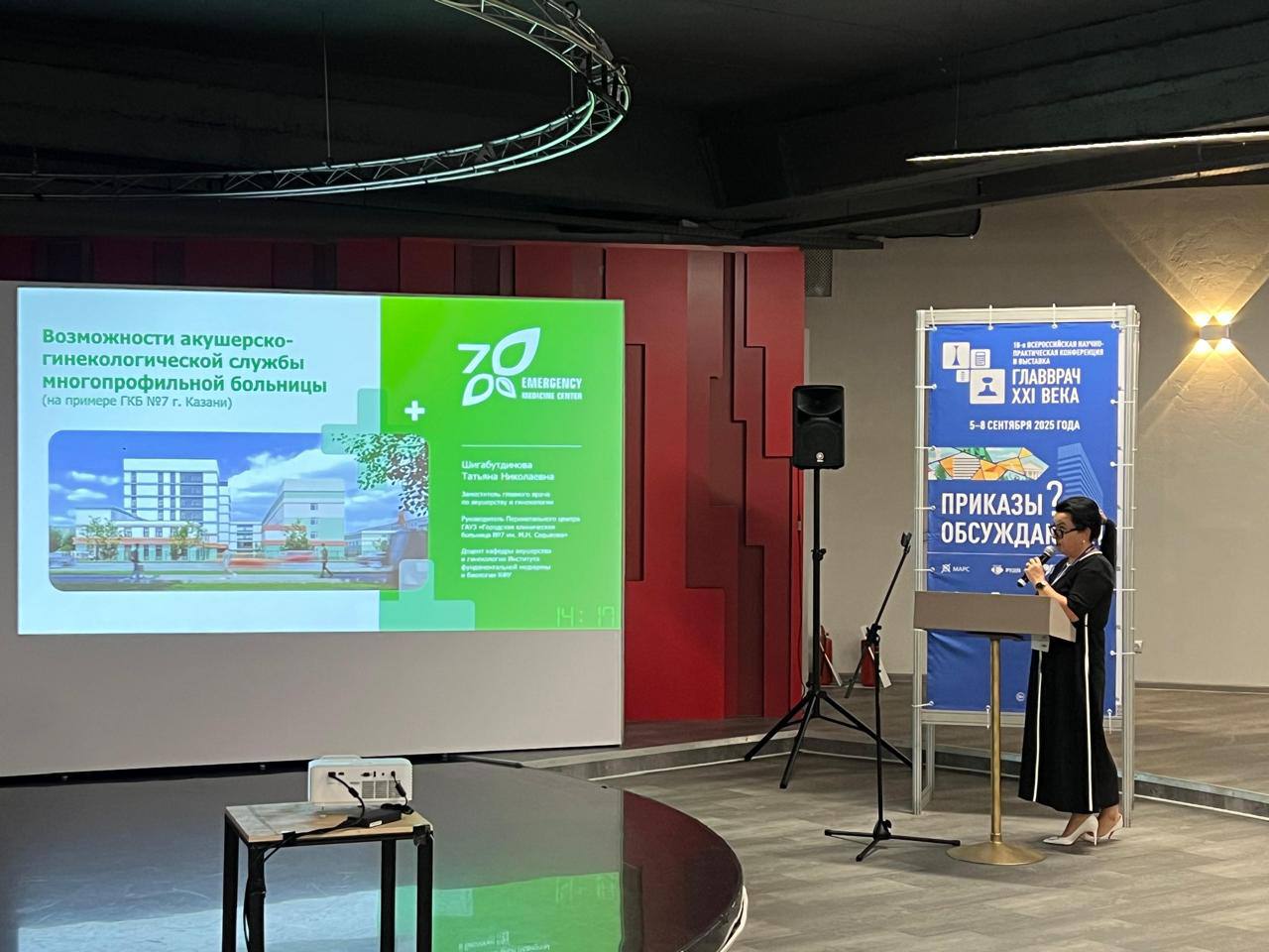 Заместитель главного врача по акушерству и гинекологии нашей клиники Татьяна Николаевна Шигабутдинова представила доклад «Возможности акушерско-гинекологической службы многопрофильной больницы (на примере ГКБ Nº7 им. М. Н. Садыкова г. Казани)», поделившись опытом оказания медицинской помощи женщинам в нашем Перинатальном центре.