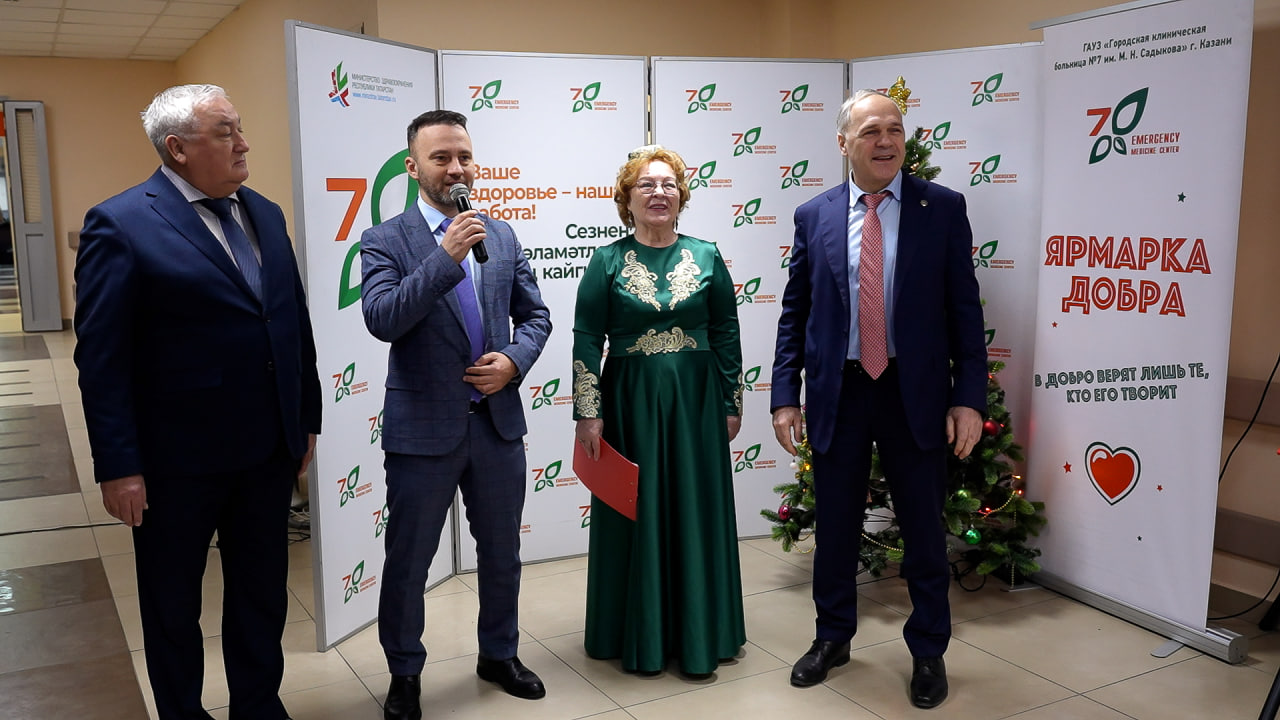 От имени администрации больницы и Совета Ветеранов благодарим тех, кто поддержал Ярмарку добра: Народный артист РТ Фанис Зиганшин, Народный артист РТ Фанис Калимуллин, Заслуженная артистка РТ Алия Калимуллина, доктор и танцор, руководитель танцевального ансамбля «Вдохновение» Айрат Фазылзянов, певец и музыкант Рашит Сабиров, студенты медицинского колледжа и университета. Спасибо за вашу поддержку!