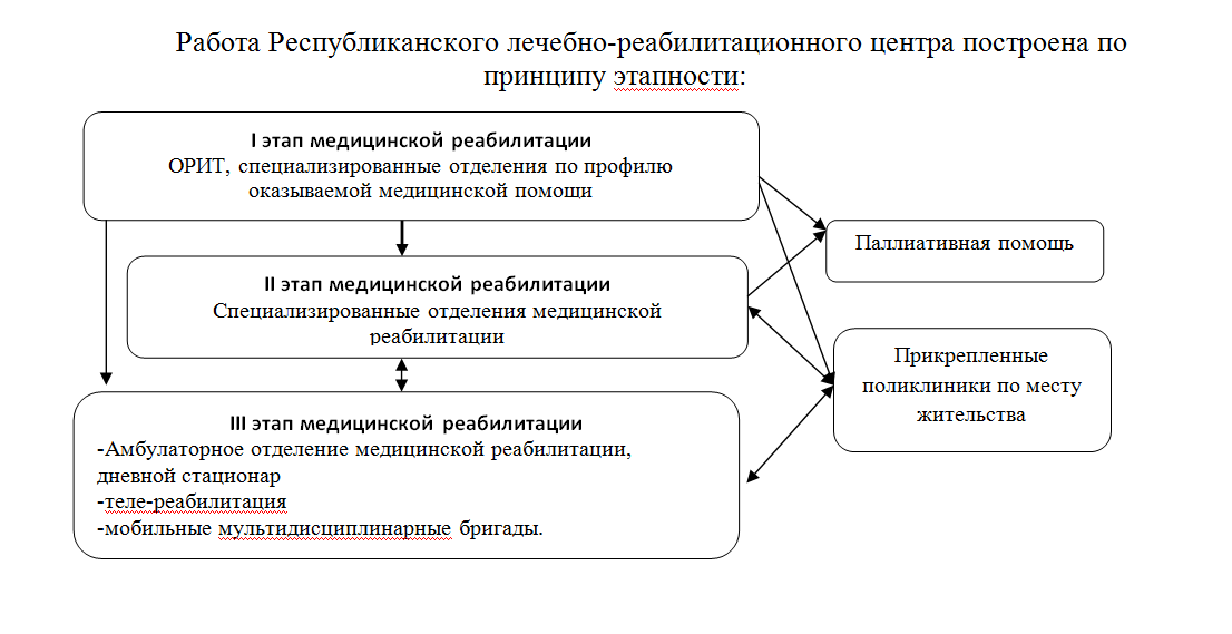 Работа Республиканского лечебно-реабилитационного центра построена по принципу этапности: