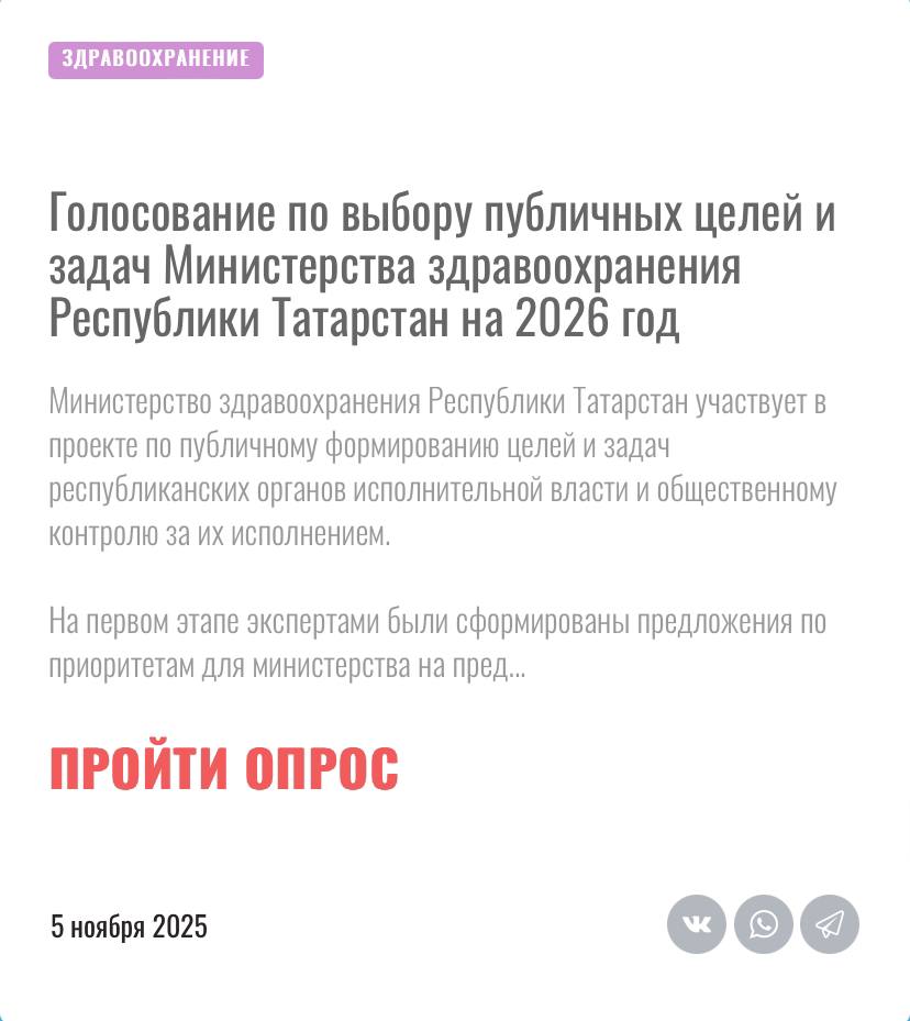Жители Татарстана могут выбрать задачи для Минздрава РТ на 2026 год