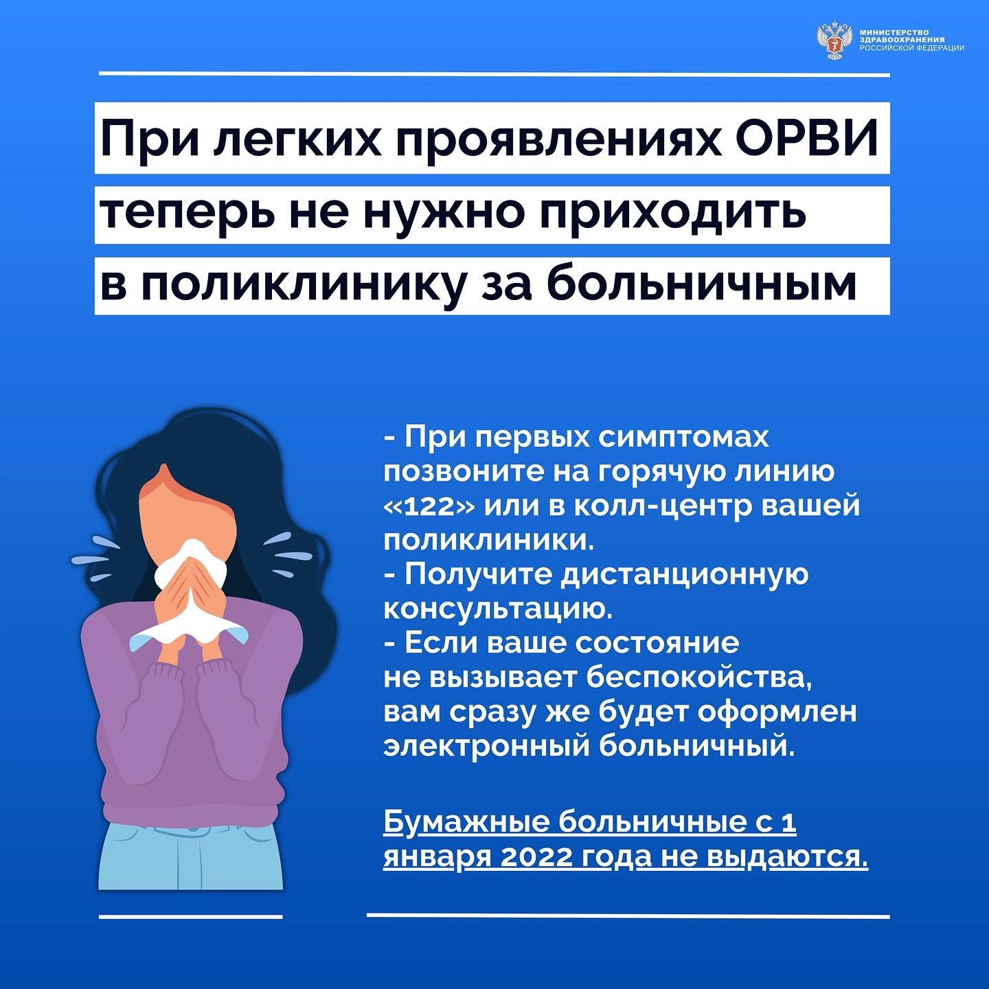 Оформить больничный стало проще: теперь не нужно идти в поликлинику для оформления больничного листа, достаточно будет обратиться в колл-центр. Так врачи смогут больше внимания уделять тем, кому действительно необходима медпомощь, и меньше тратить времени на оформление документов.