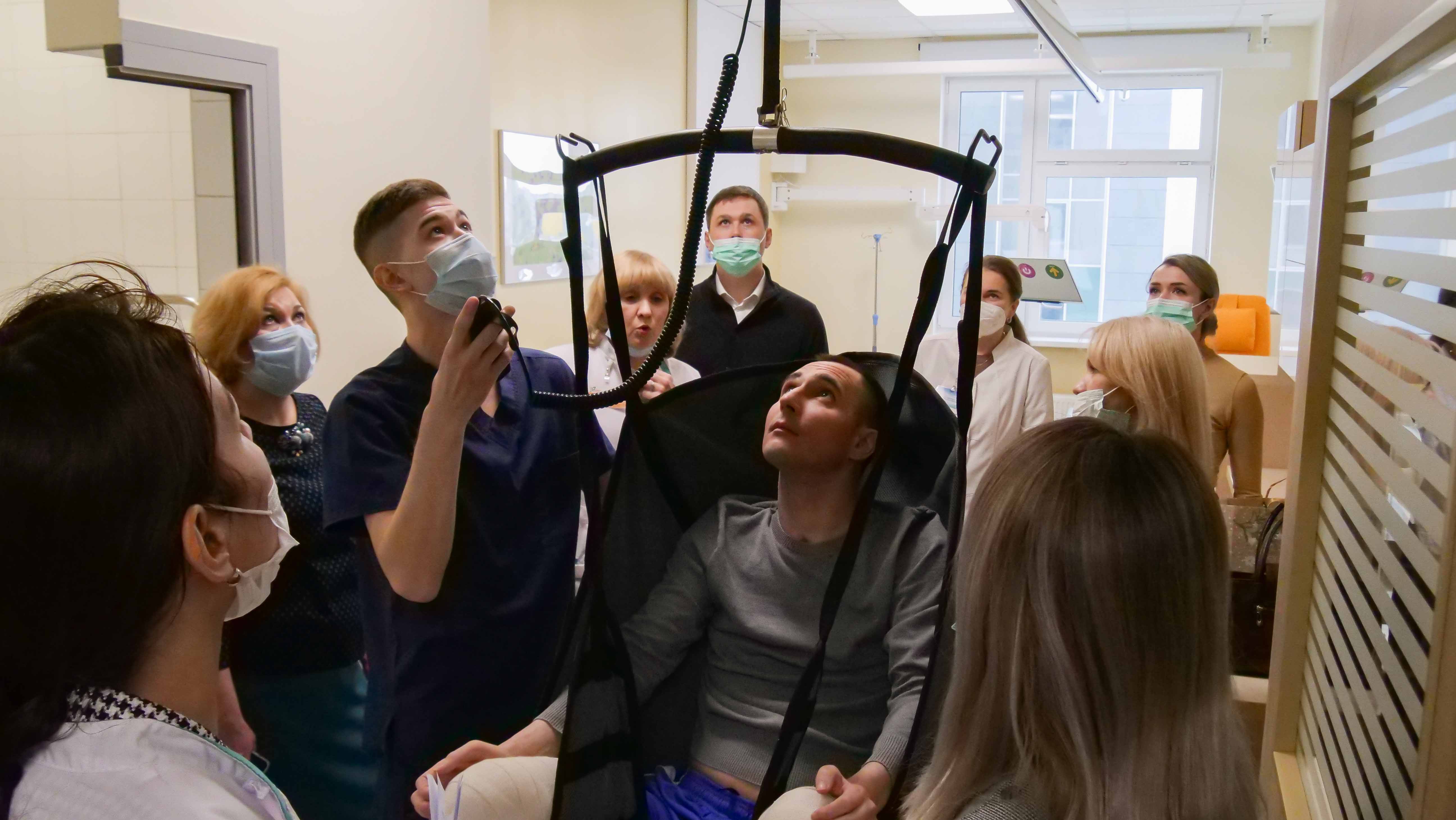 Интерьер «умной палаты» – как в швейцарских клиниках: на потолке слинговая система для перемещения пациента, мебель легко передвигается и регулируется по высоте, меняется подсветка.