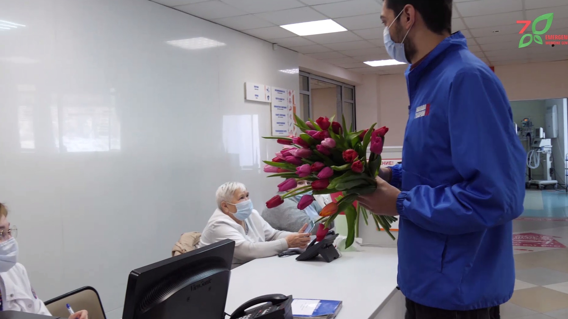 Активисты «Молодой гвардии» Республики Татарстан пришли поздравить сотрудниц клиники с их самым нежным и добрым праздником и подарили им тюльпаны и тёплые слова.