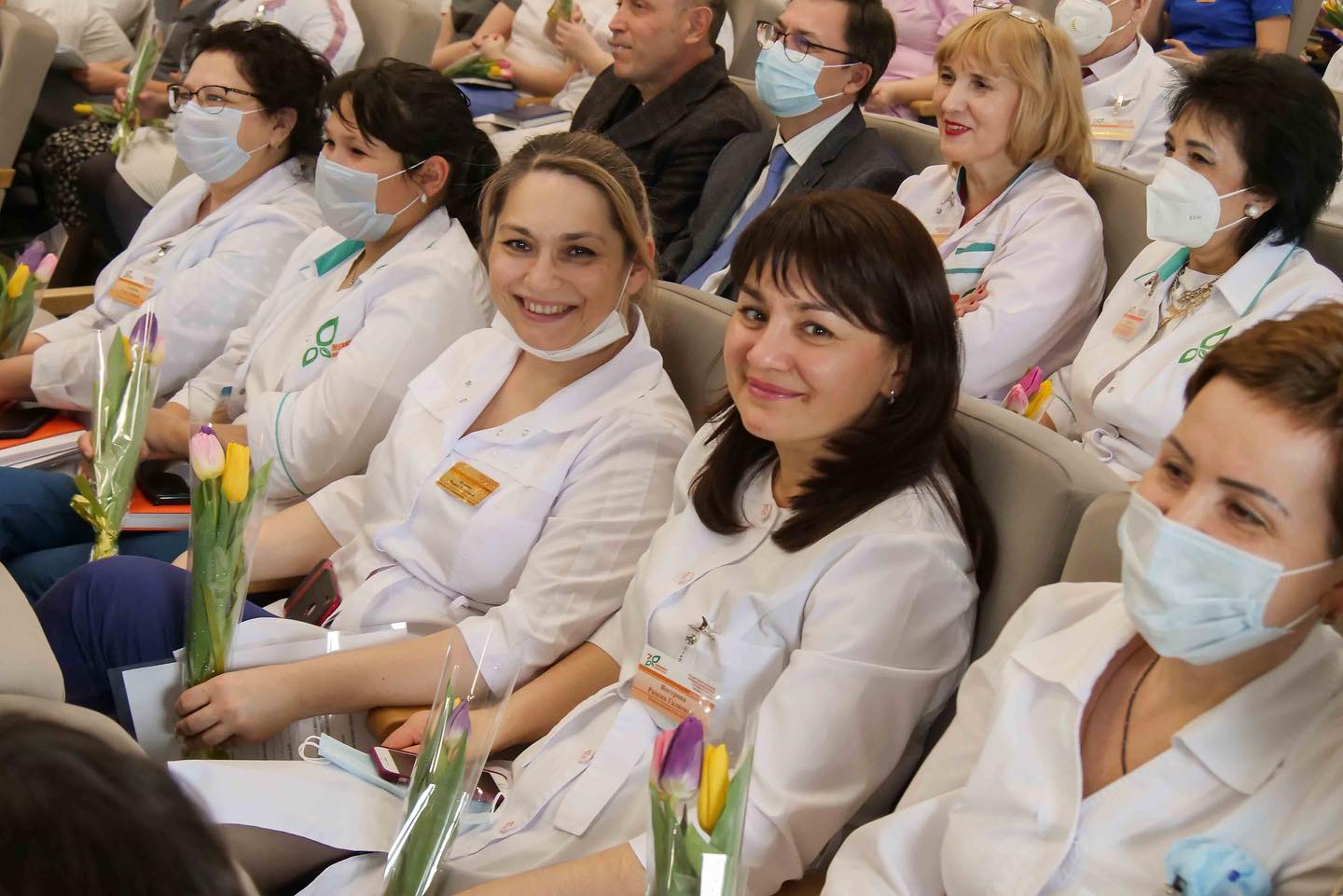 В зале царила добрая и праздничная атмосфера, всюду звучали поздравления, тёплые пожелания. Всем женщинам преподнесли букеты нежных тюльпанов.