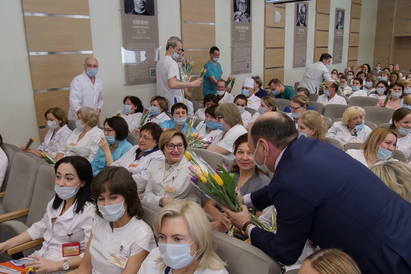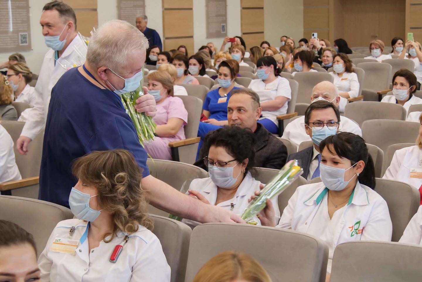 «8 Марта - это не просто первый весенний праздник. Это дань уважения женщине - самодостаточной и целеустремленной, умеющей справляться с тысячей дел одновременно, - с этими словами обратился к женской половине нашей клиники главный врач Городской клинической больницы N7 Казани Артур Маркосович Делян.