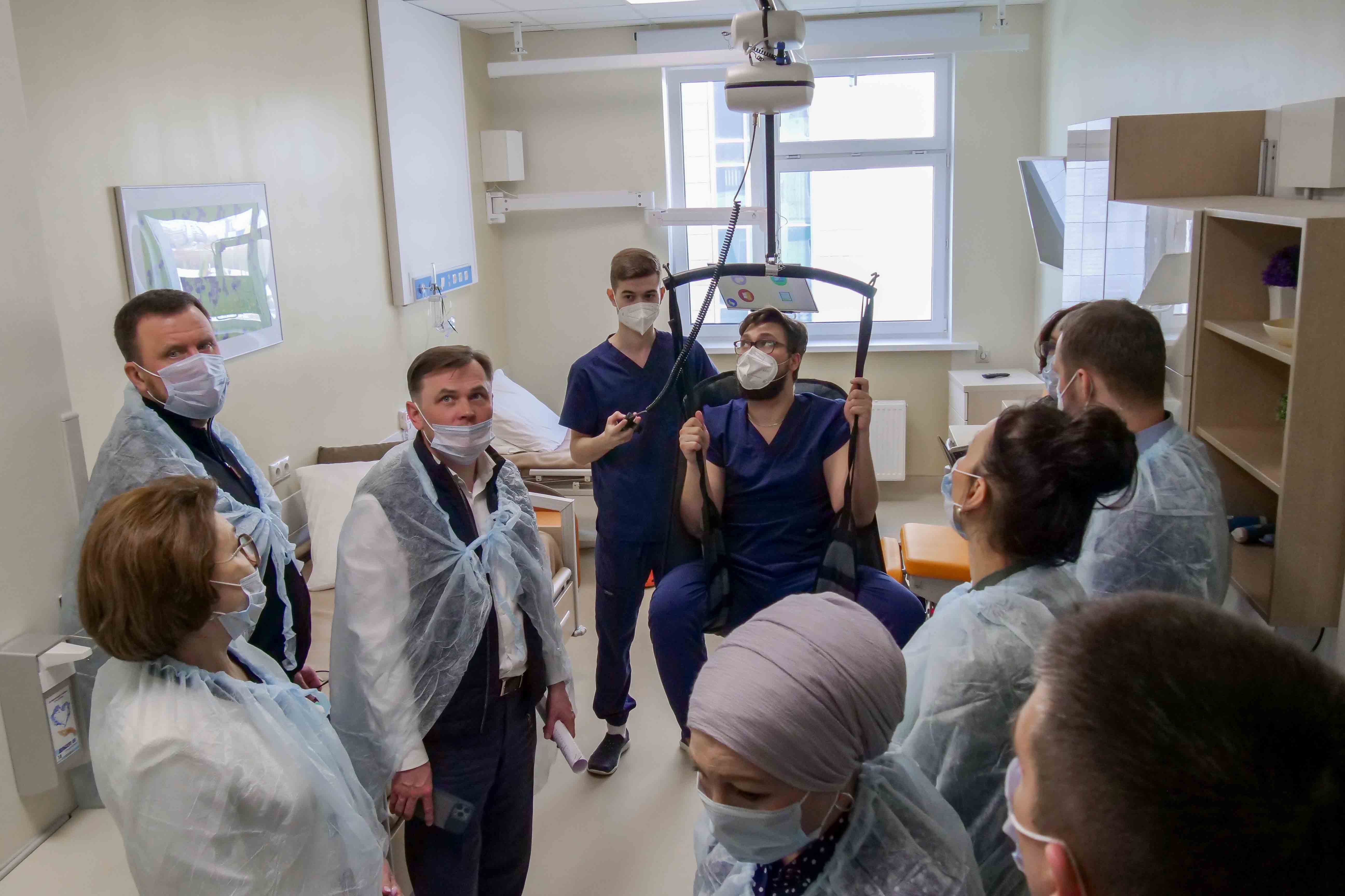 На одном из этажей клиники работает целый учебный центр для студентов и тех, кто проходит последипломную подготовку. Здесь будут готовить мультидисциплинарные бригады для работы на трех этапах оказания помощи.