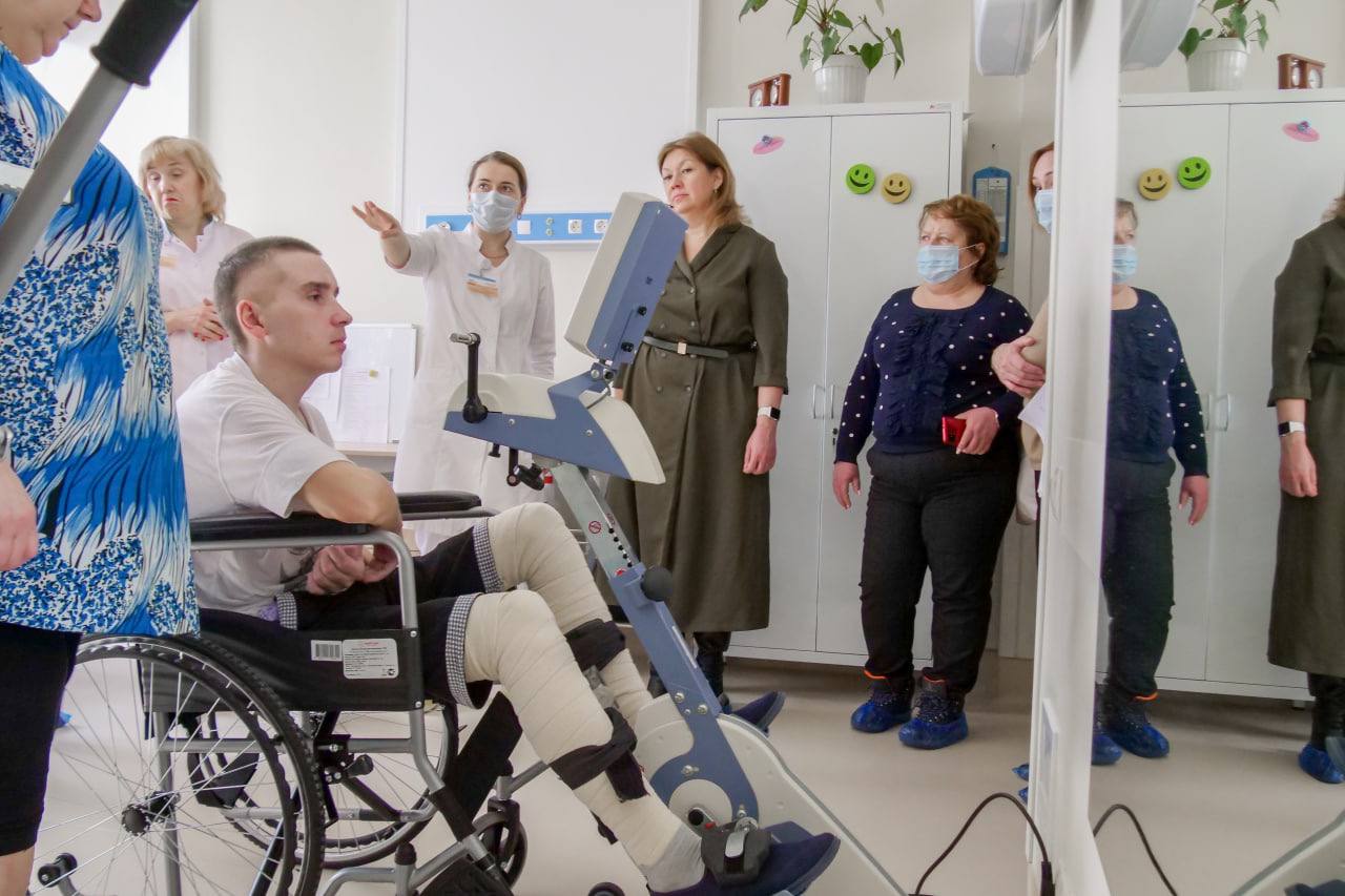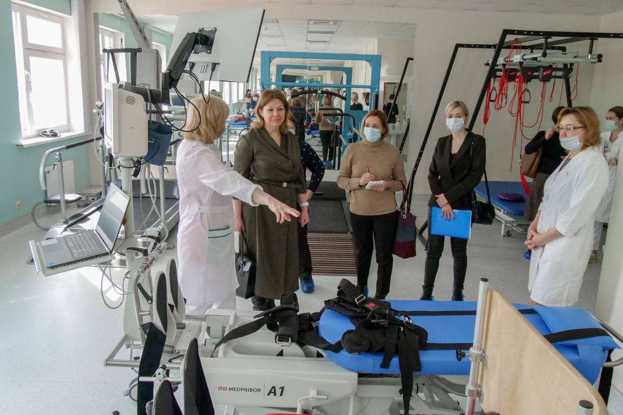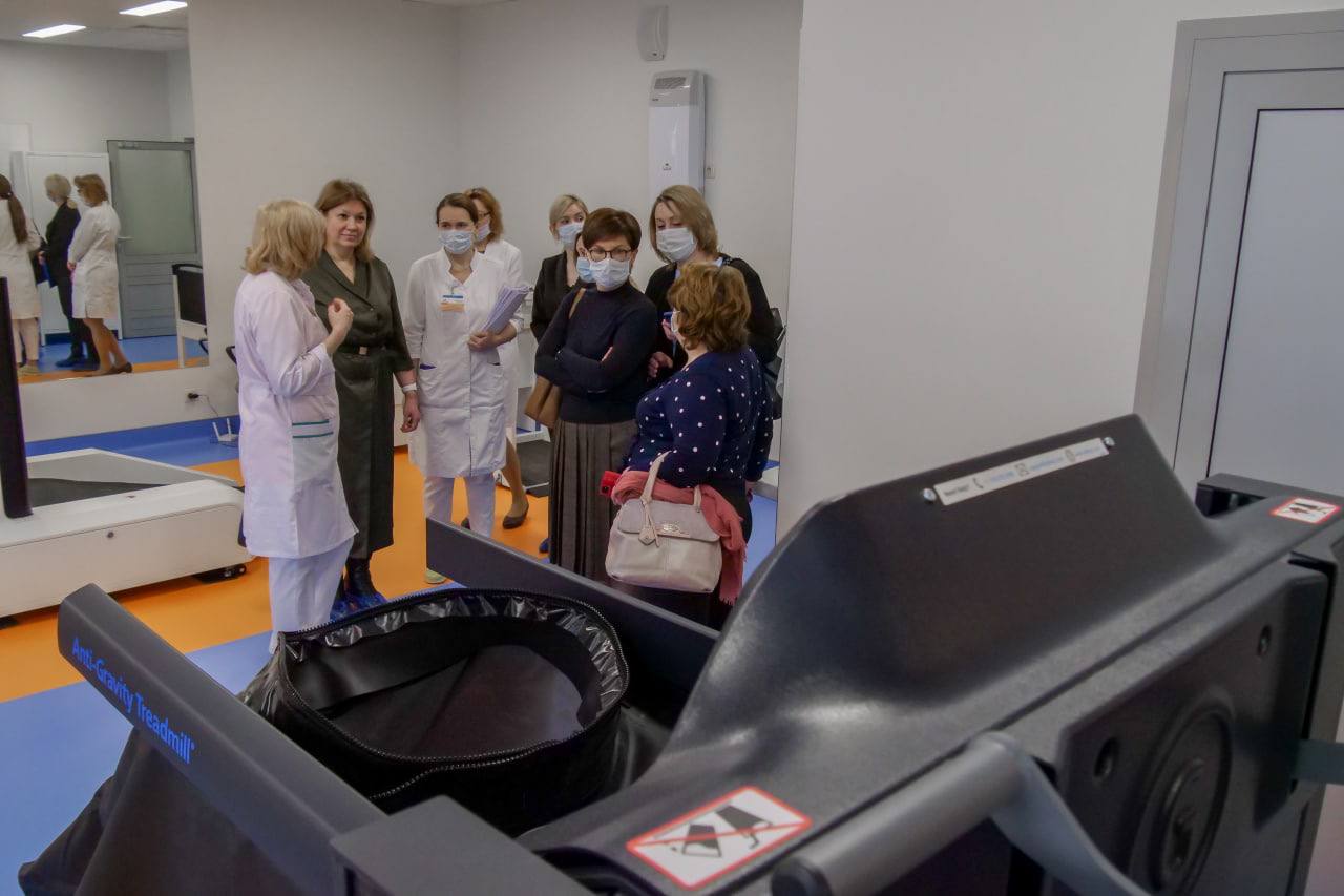 Врачи ознакомились со структурой реабилитационной службы. В ходе дискуссии обсуждались особенности реабилитации после перенесённой коронавирусной инфекции (двигательная активность, функциональное состояние пациентов, информирование об особенностях лечения, профилактика осложнений со стороны различных систем органов).