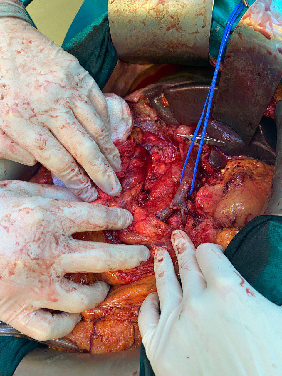 Она перенесла очень большую и сложную операцию — панкреатодуоденальную резекцию с резекцией верхнебрыжеечной вены по поводу опухоли головки поджелудочной железы.