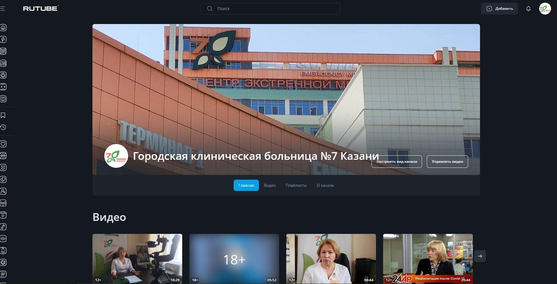 У Городской клинической больницы №7 Казани появился аккаунт в видеохостинге Rutube с репортажами из служб клиники, интервью с ведущими специалистами и многое другое.