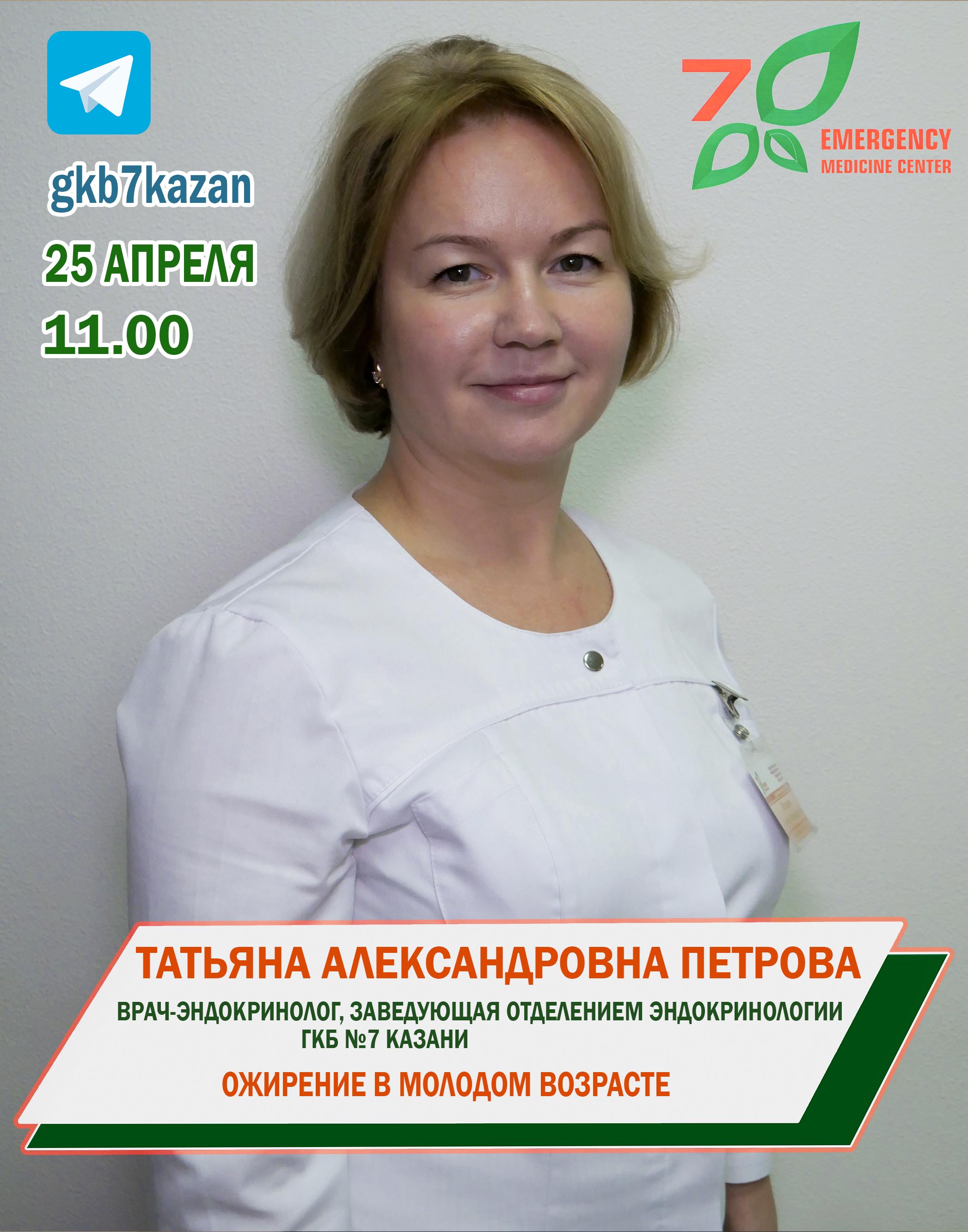 Расскажет врач – эндокринолог, заведующая эндокринологическим отделением ГКБ 7 Казани Татьяна Александровна Петрова 25 апреля.