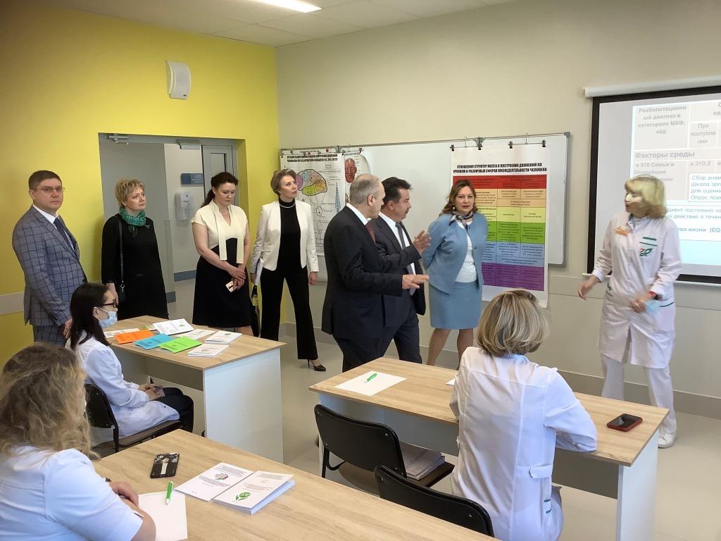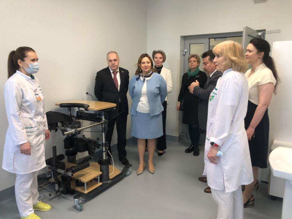До начала важного совещания в сопровождении министра здравоохранения РТ Марата Наилевича Садыкова гости знакомятся с реабилитационным блоком клиники.