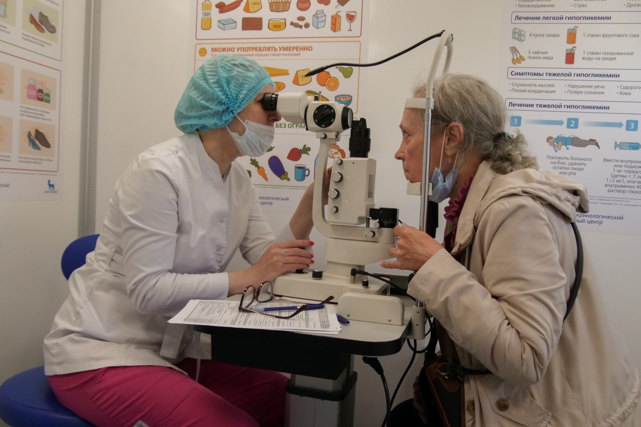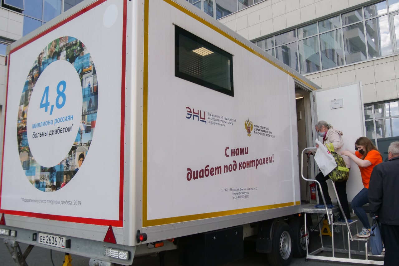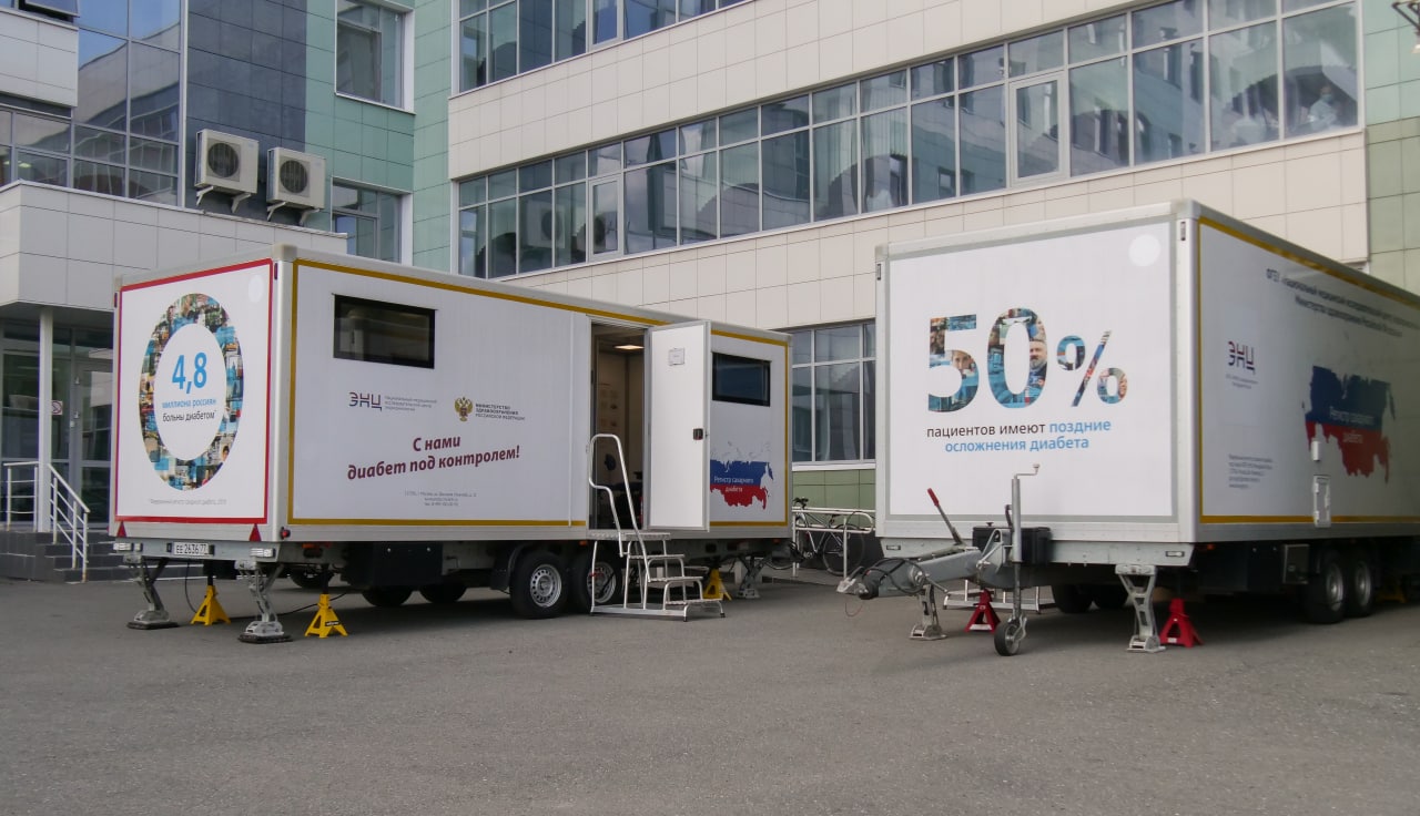 Для этого здесь установлен диамобиль – уникальный комплекс, представляющий собой лабораторию и научный центр на колесах и оснащенный всем необходимым для диагностики состояния органов-мишеней у больных сахарным диабетом.