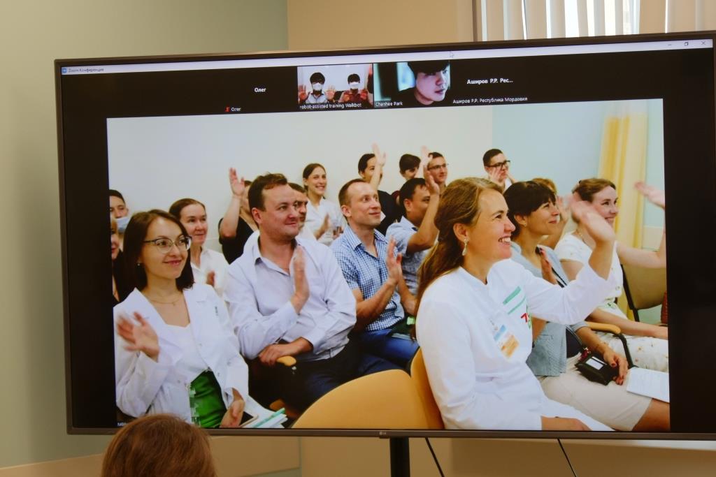 Инструктор- методист ЛФК отделения медицинской реабилитации пациентов с нарушением функций ЦНС Ренат Ильгамович Гумаров поделился с зарубежными коллегами клиническим опытом работы на роботизированной системе Walkbot.