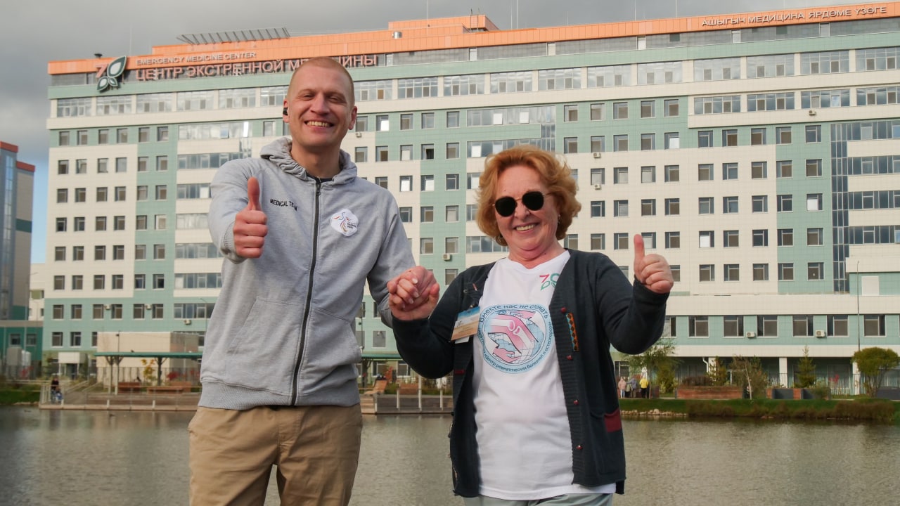 Врачи, медсестры, студенты и пациенты подхватили лозунг этого дня и провели занятие в парке у озера.