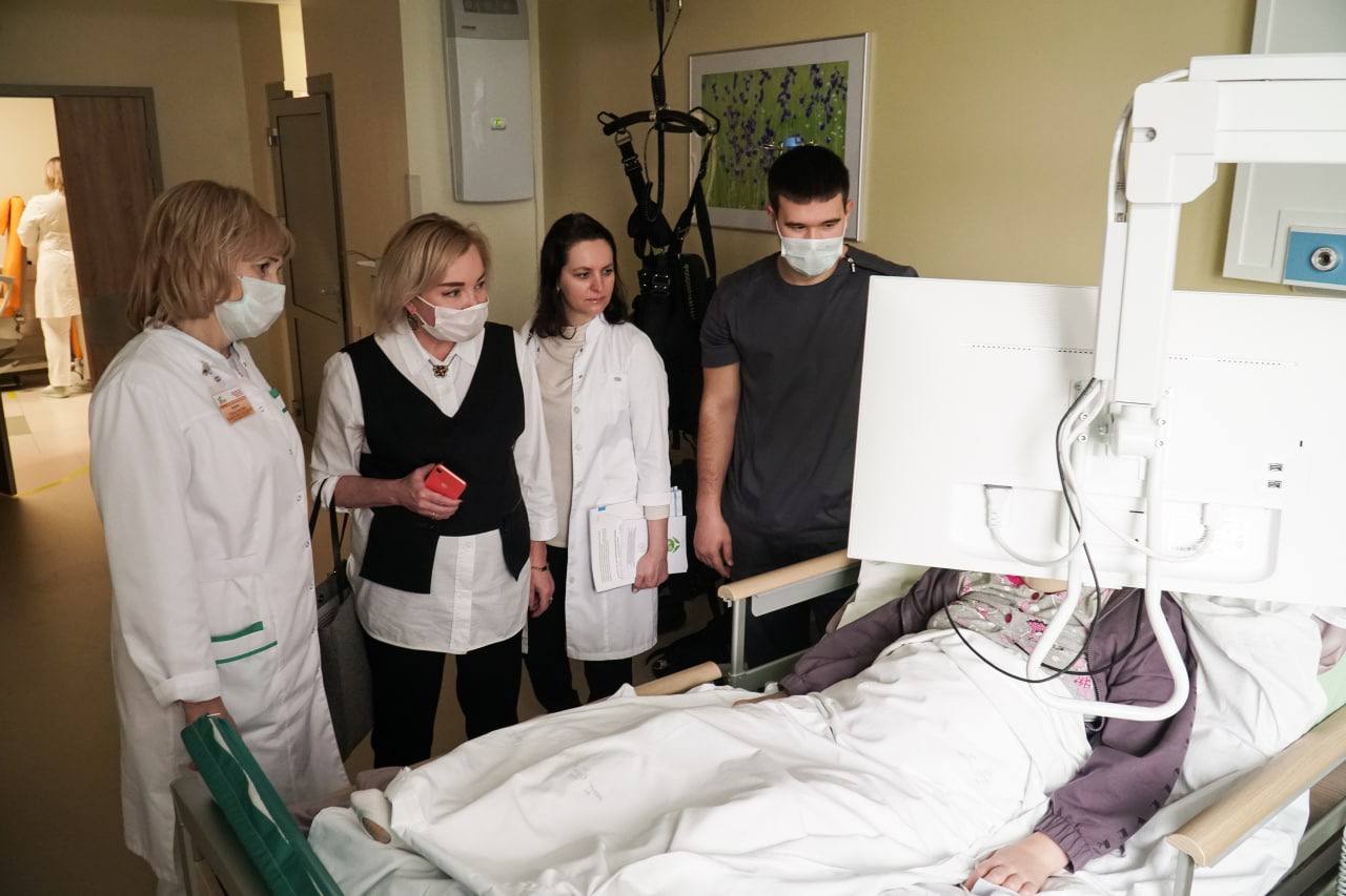 Главный реабилитолог клиники Резеда Ахметовна Бодрова рассказала, как организована программа реабилитации для пациентов, специалисты отделений продемонстрировали возможности и функционал представленного оборудования.