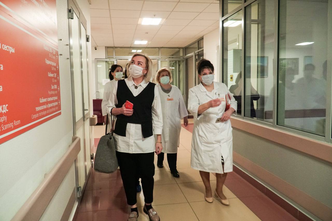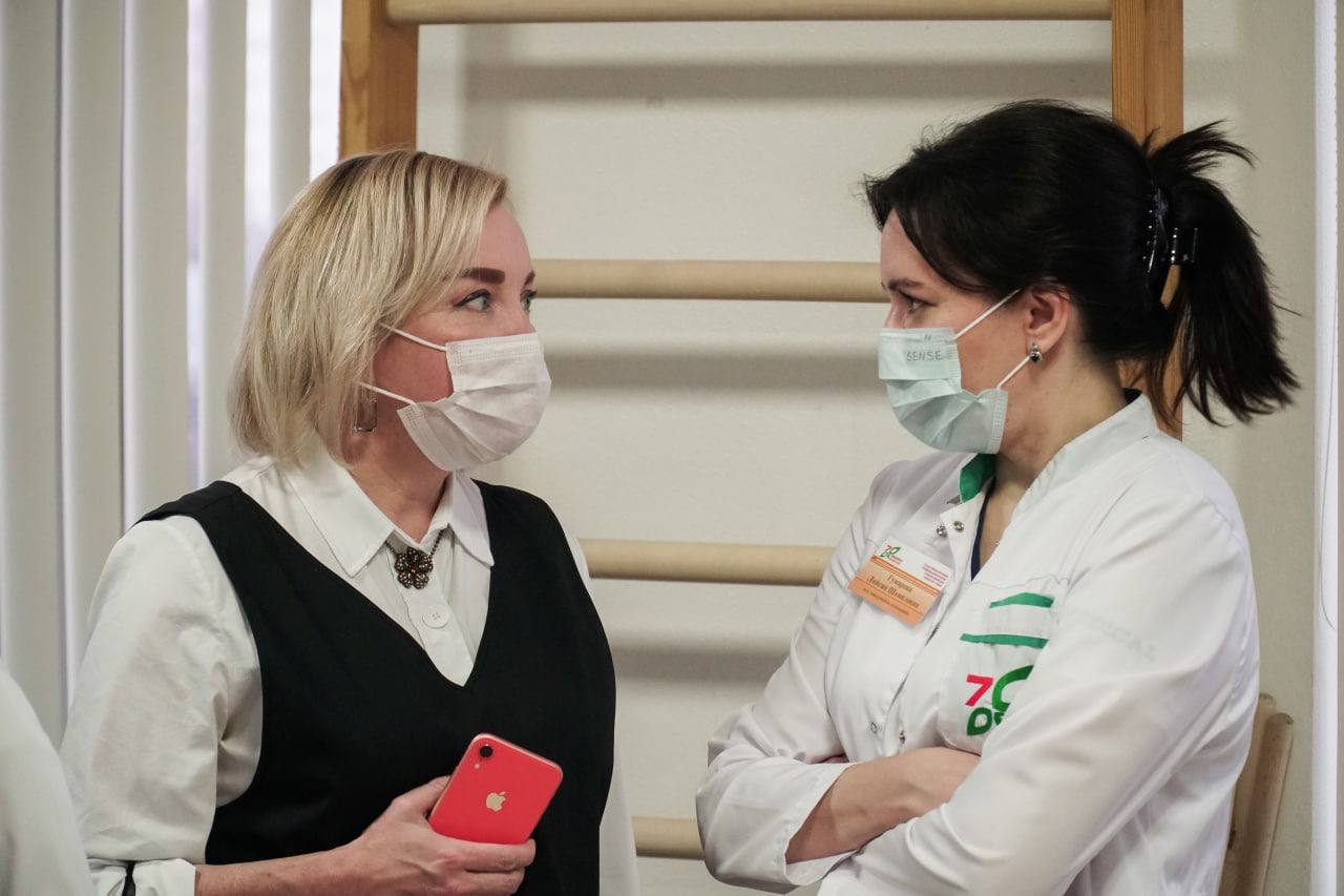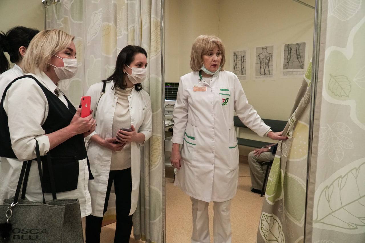 Анна Анатольевна Шишкина и Екатерина Александровна Колоскова в сопровождении начмеда клиники Зульфии Анасовны Шайхутдиновой прошли по отделениям нового корпуса – лечебно – реабилитационного центра, ознакомились с технологиями оказания медицинской помощи в условиях дневного стационара по профилю медицинская реабилитация для взрослых.