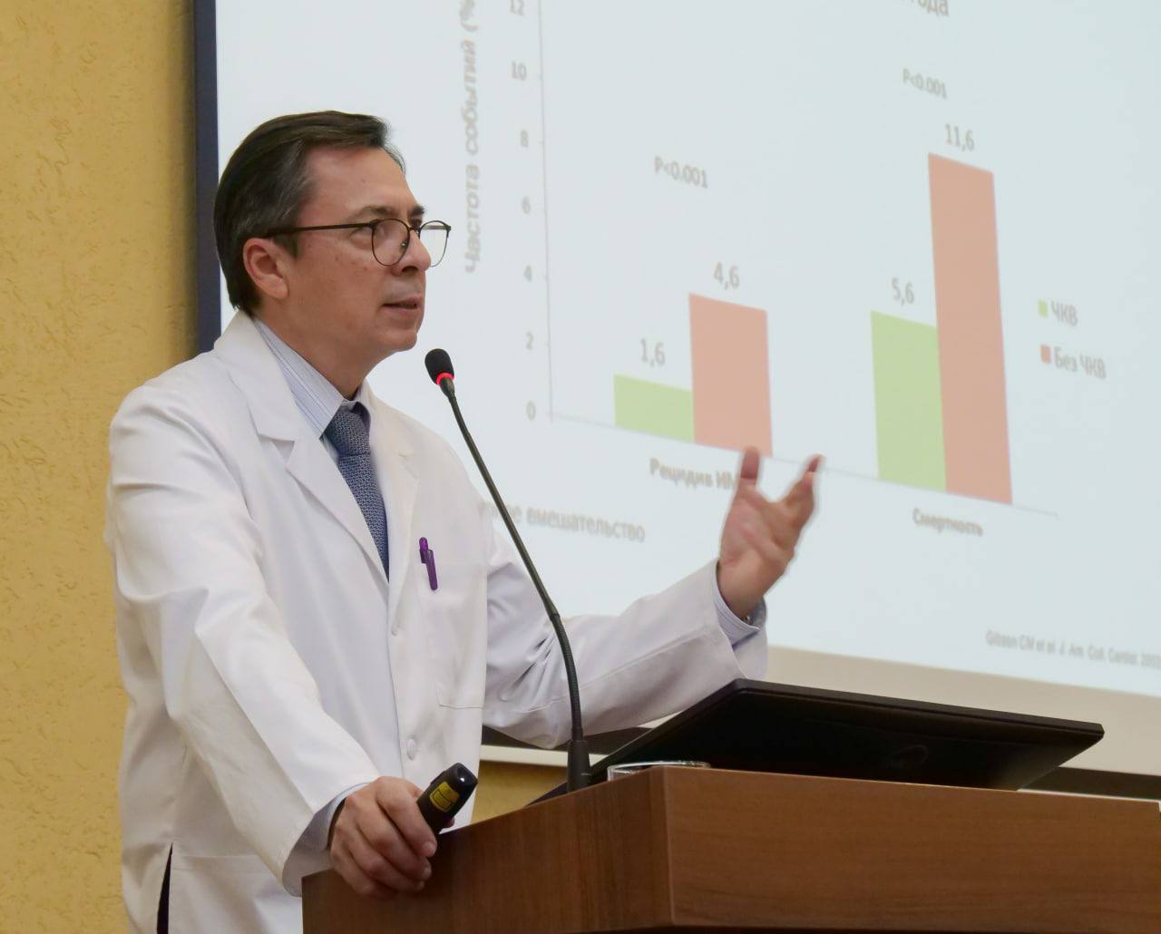 Участники конференции обсудили организационные и диагностические аспекты оказания неотложной помощи больным с острым коронарным синдромом, острым расслоением аорты и хронической сосудистой патологией, разобрали электрокардиографическую картину инфаркта миокарда (инфарктоподобные изменения ЭКГ), подняли тему анестезиологического обеспечения: трансфузиологии при тромбоэмболии лёгочной артерии.