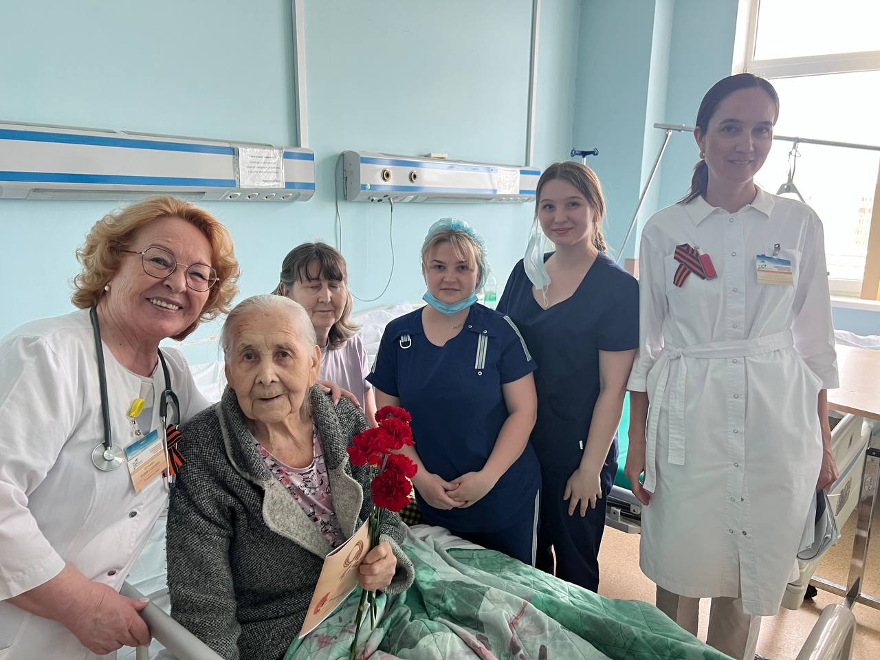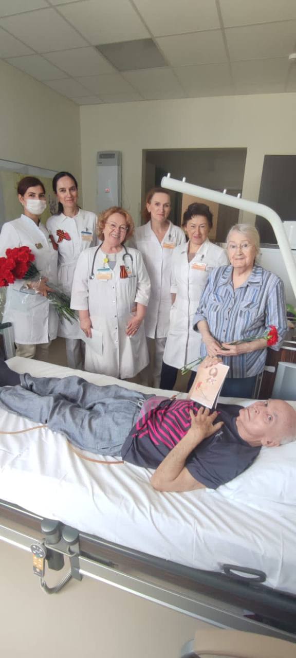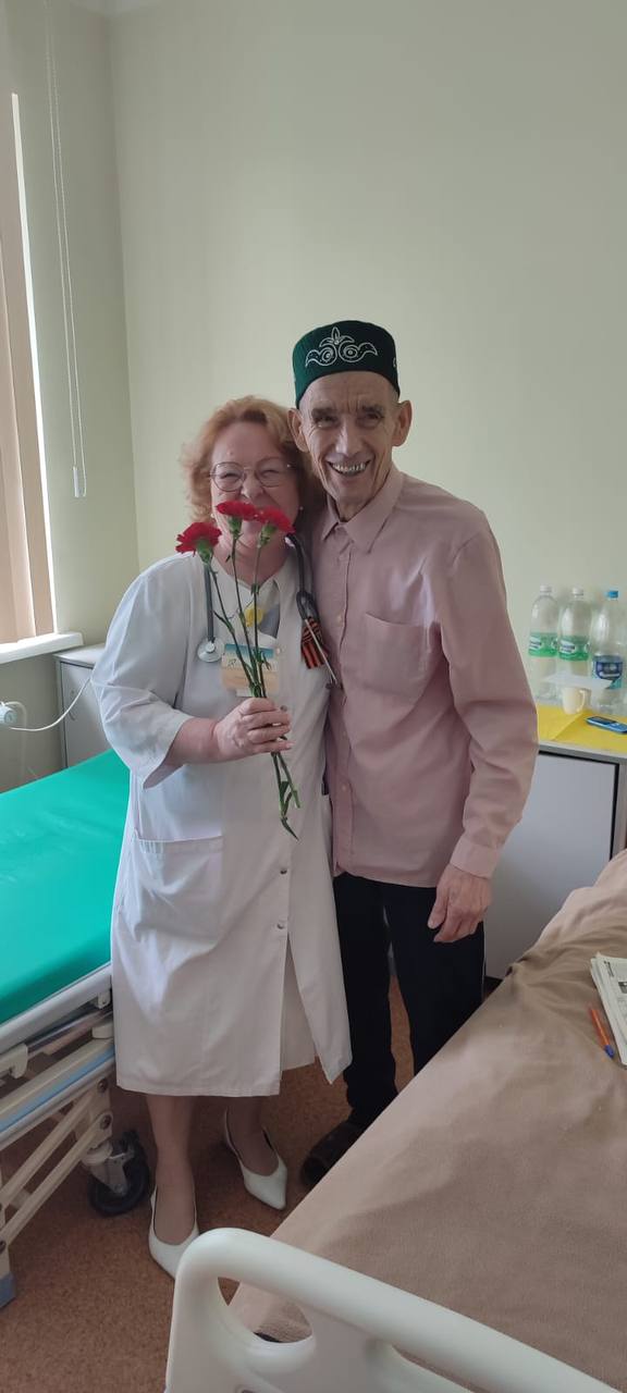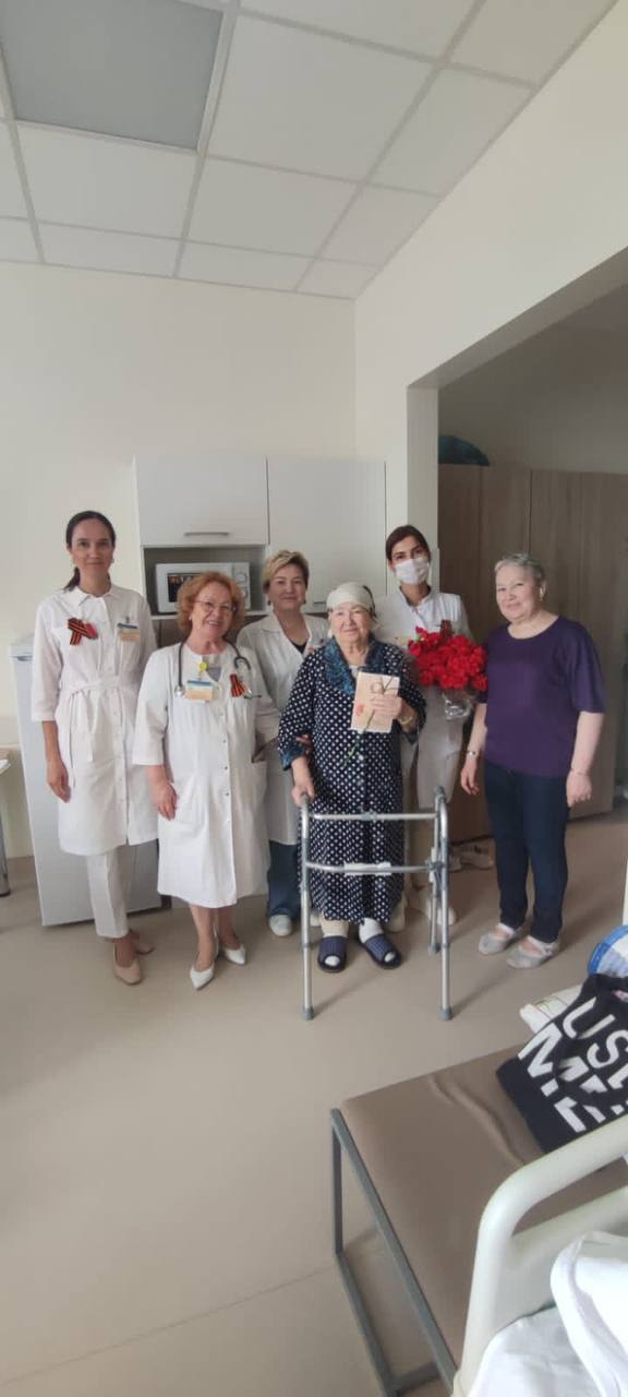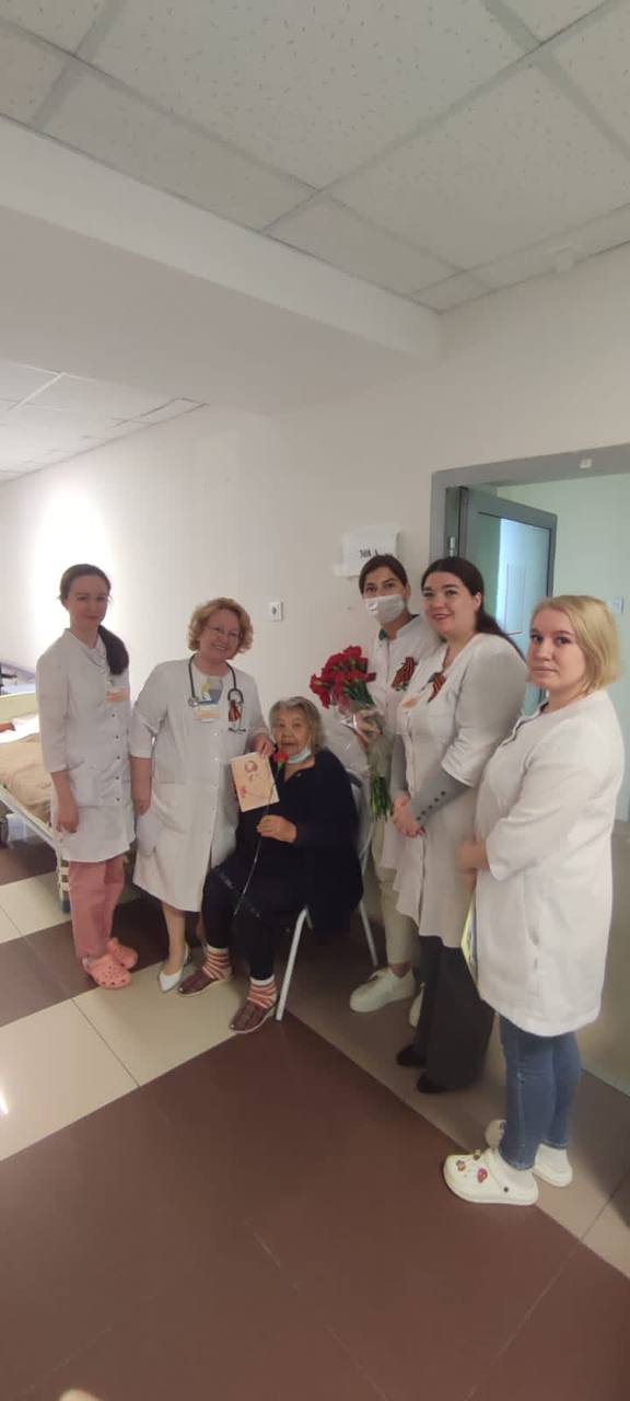 Сегодня председатель Совета ветеранов ГКБ 7 Казани, врач-ревматолог Равия Гаязовна Мухина, представители администрации и первичной профсоюзной организации клиники, заведующие отделениями и старшие медицинские сестры отделений поздравили с Днем Победы ветеранов из категории "дети войны" и тружеников тыла, которые на данный момент находятся на лечении в нашей клинике.