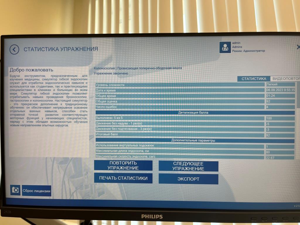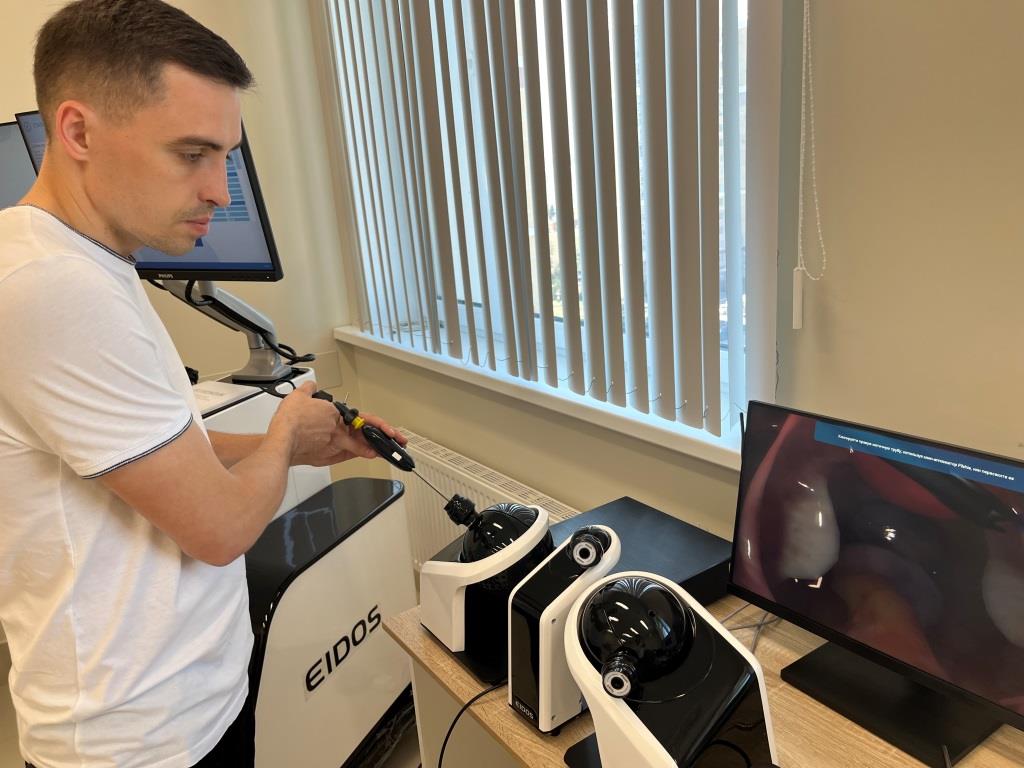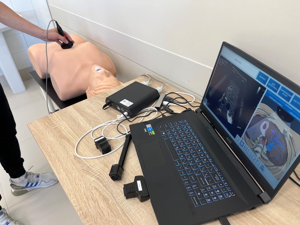 Таким образом, отрабатываются навыки на портативном виртуальном симуляторе лапароскопии с обратной тактильной связью, на портитивном виртуальном симуляторе эндоваскулярных вмешательств с обратной тактильной связью, на виртуальном симуляторе ультразвуковой диагностики и виртуальном симуляторе внутриапросветной эндоскопии.