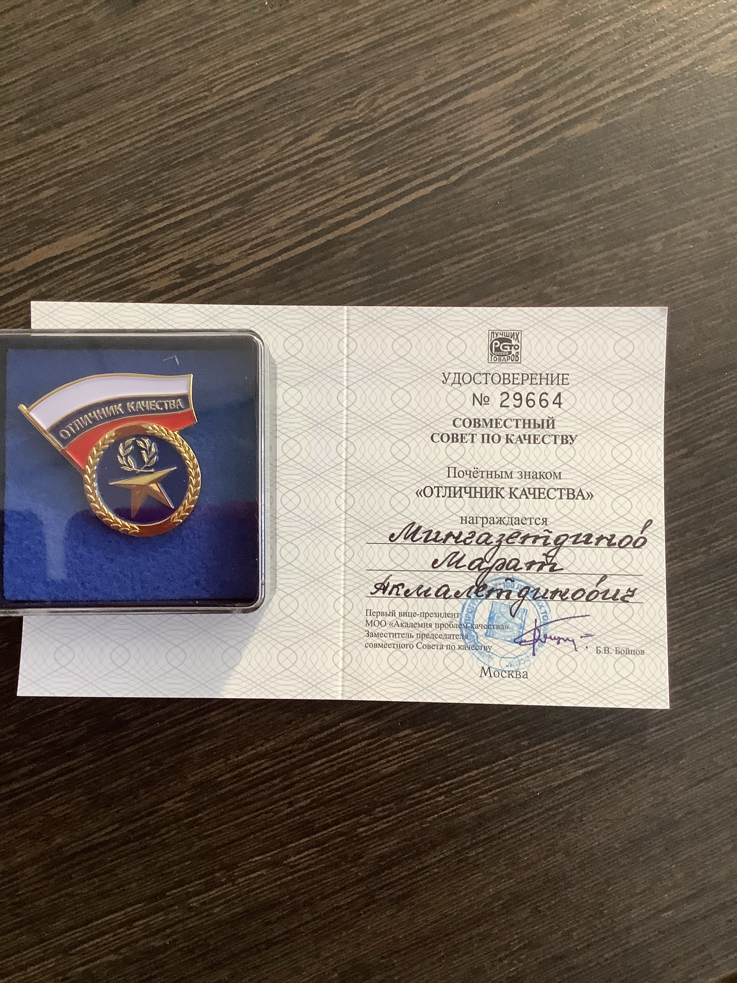 Марат Акмалетдинович Мингазетдинов - Отличник Качества!