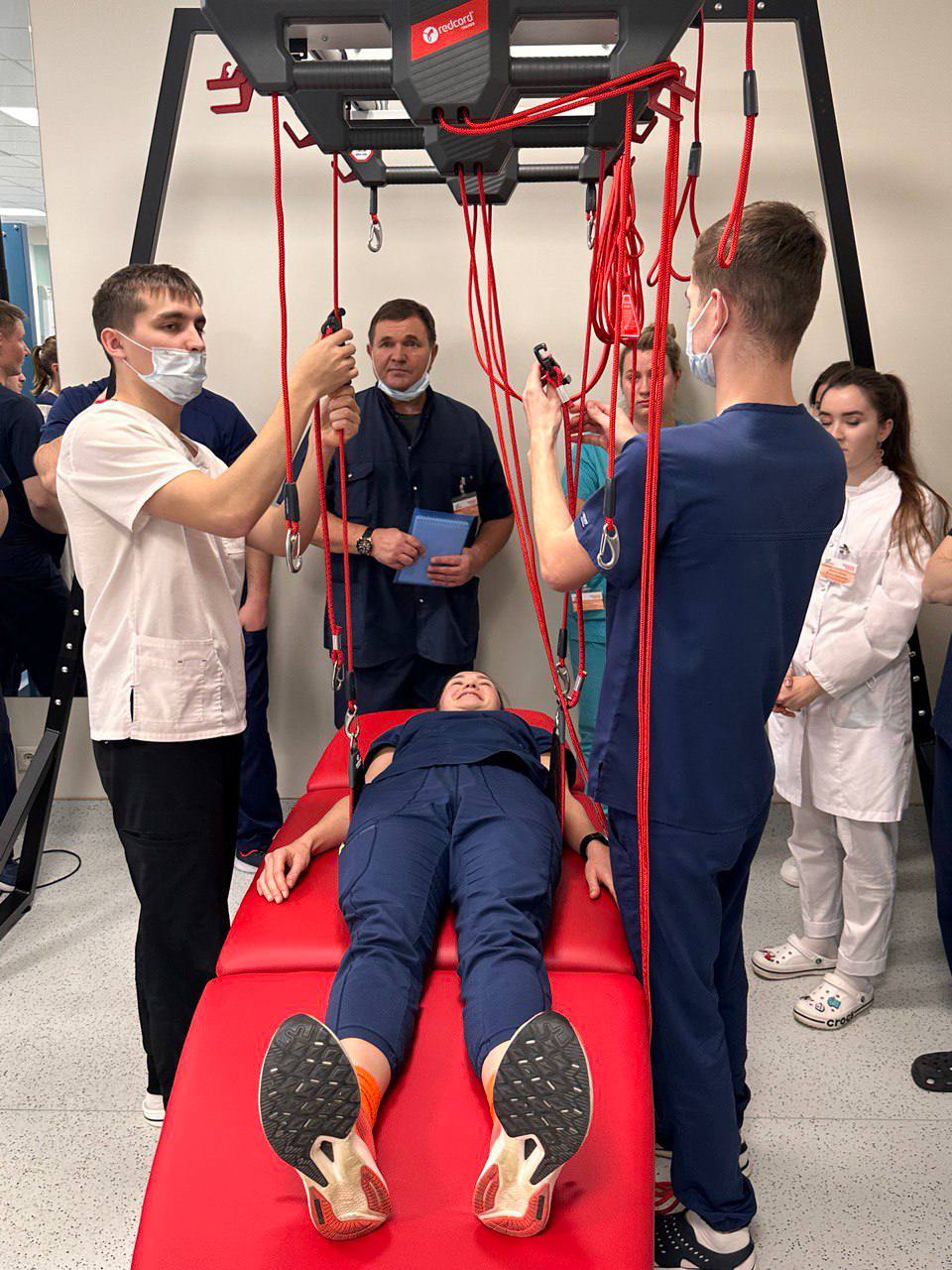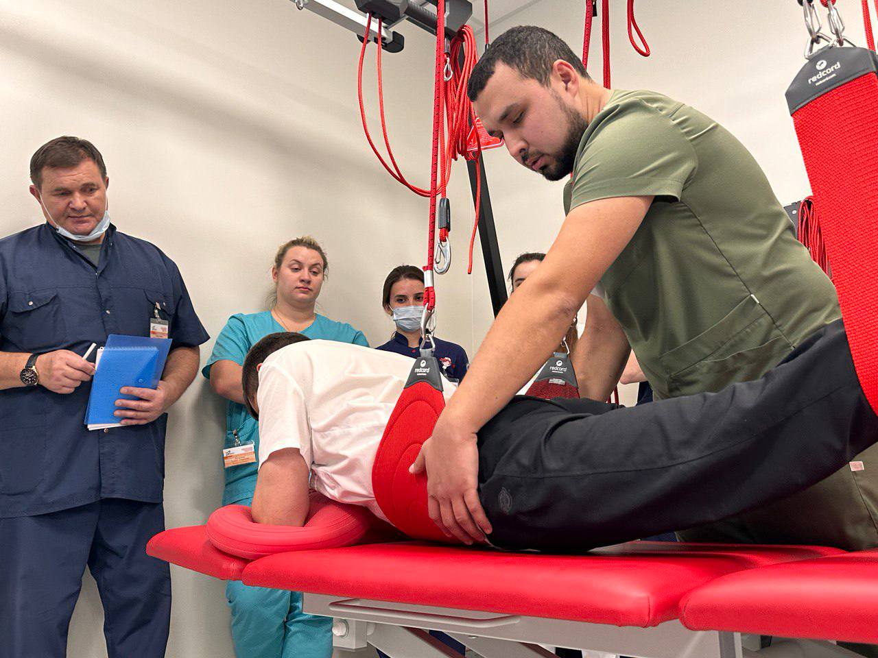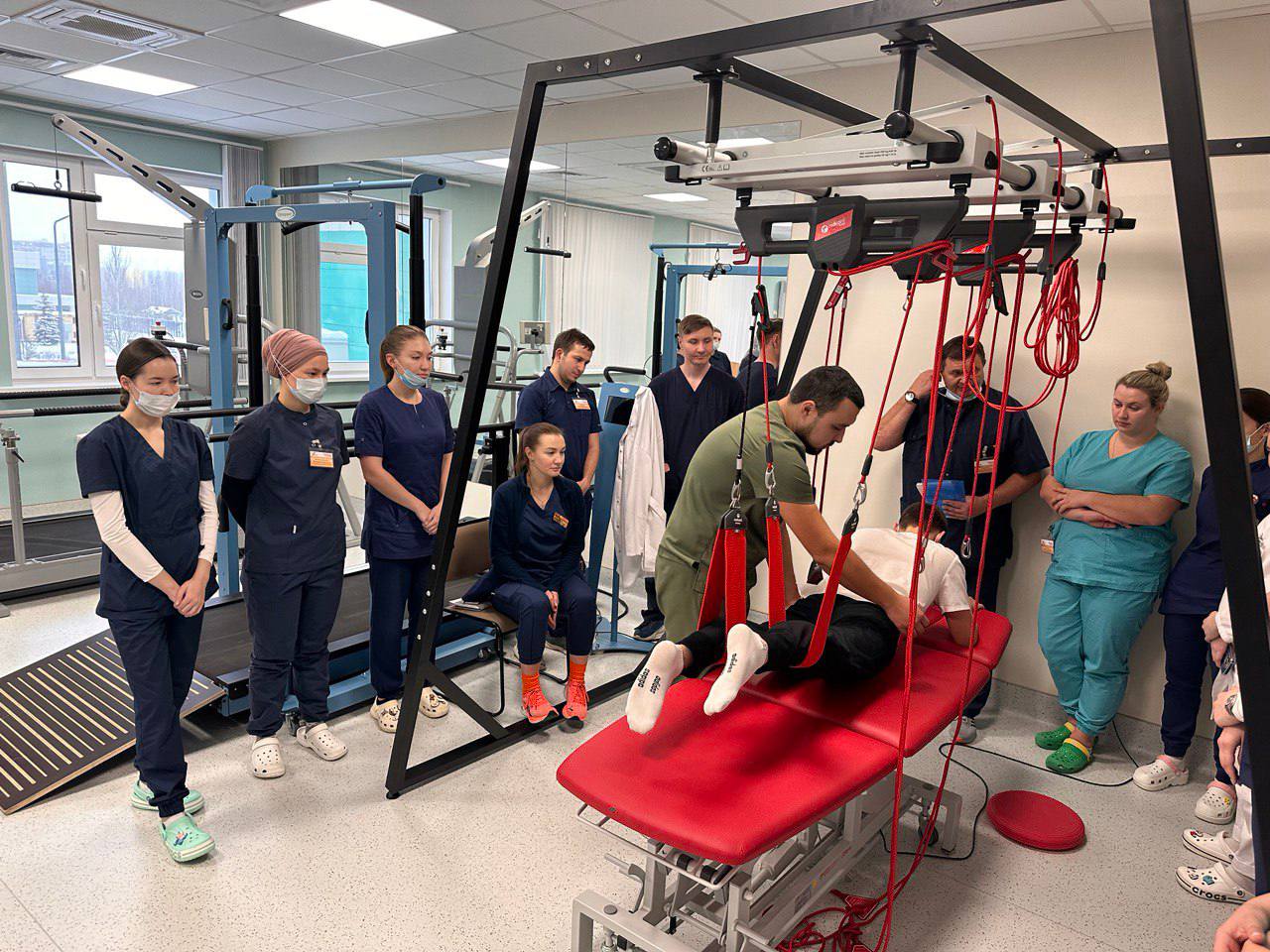 Врач физической и реабилитационной медицины отделения реабилитации пациентов с нарушением функций ЦНС Алмаз Альбертович Хазиев провел мастер класс по применению кинезиотерапевтической системы с разгрузкой массы тела Redcord.
