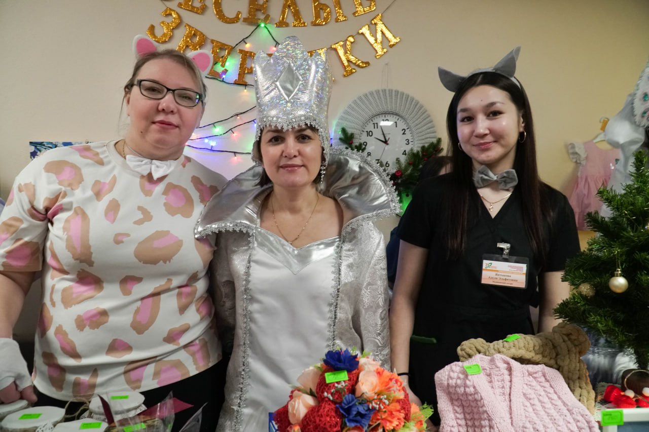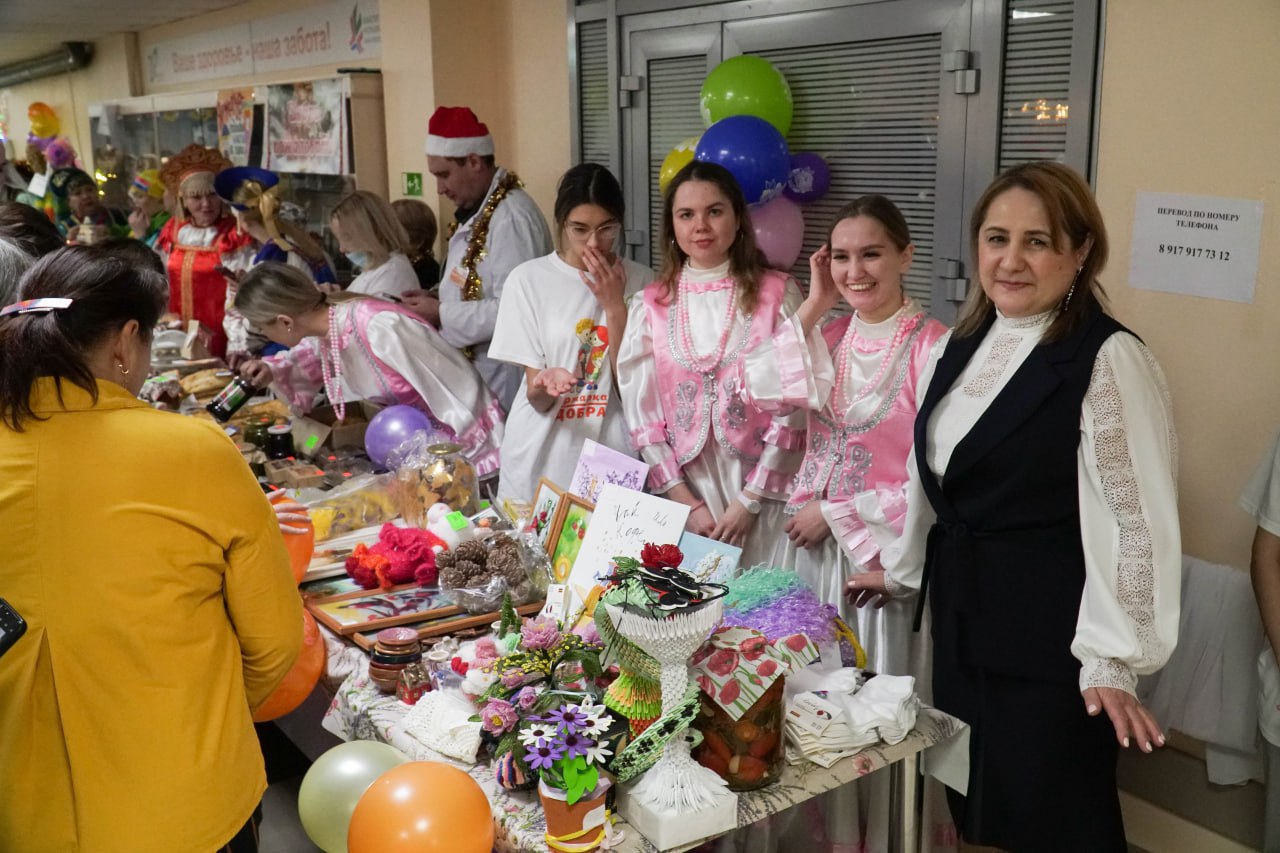 С раннего утра фойе клиники украсили столы с угощениями и изделиями, выполненными руками медиков.