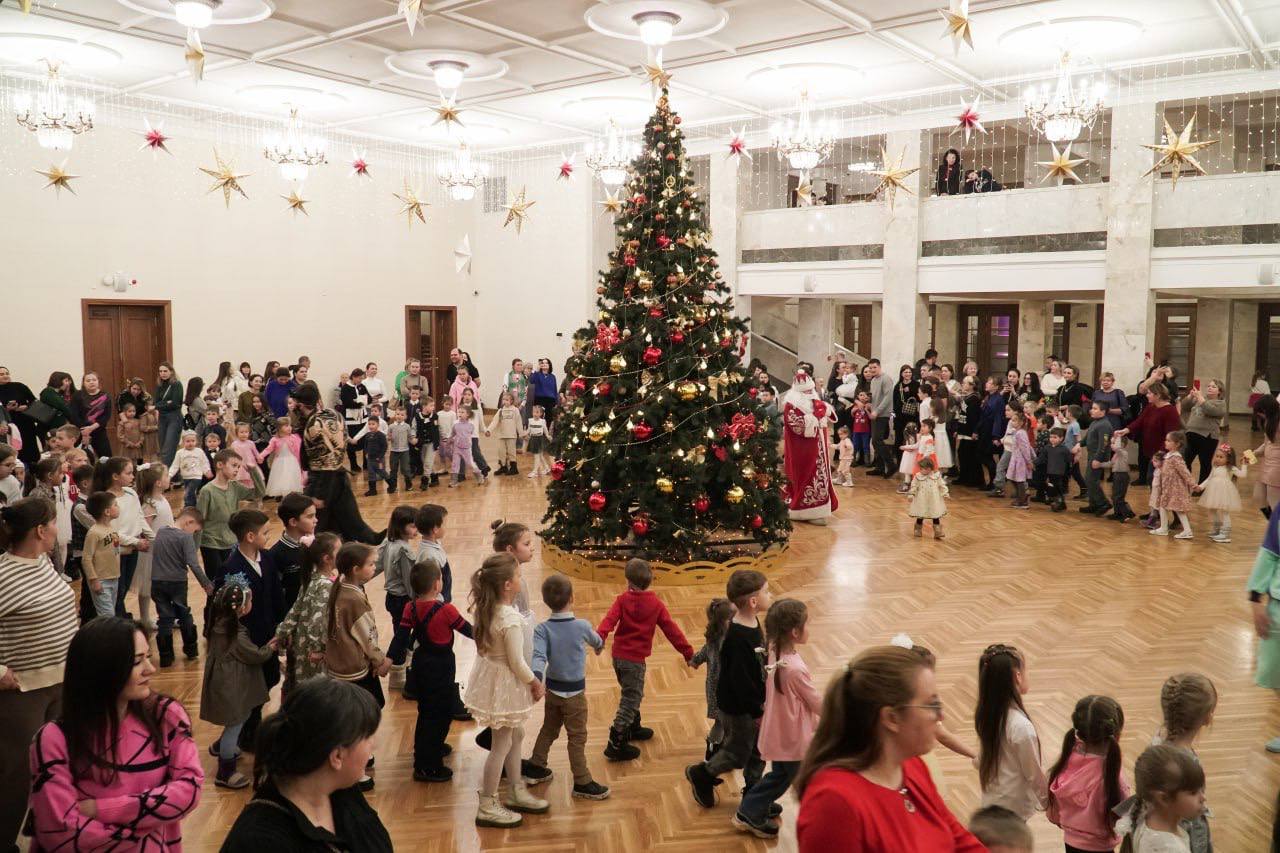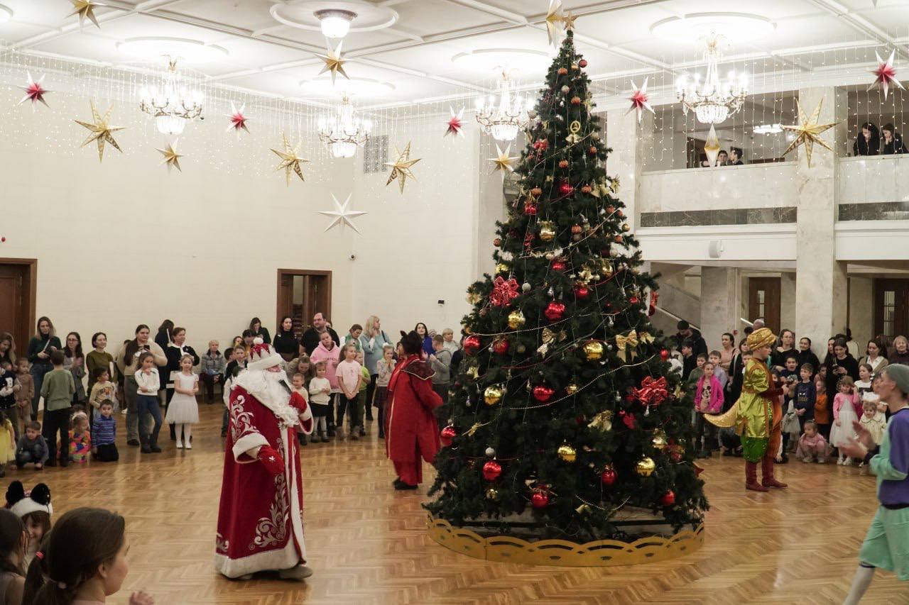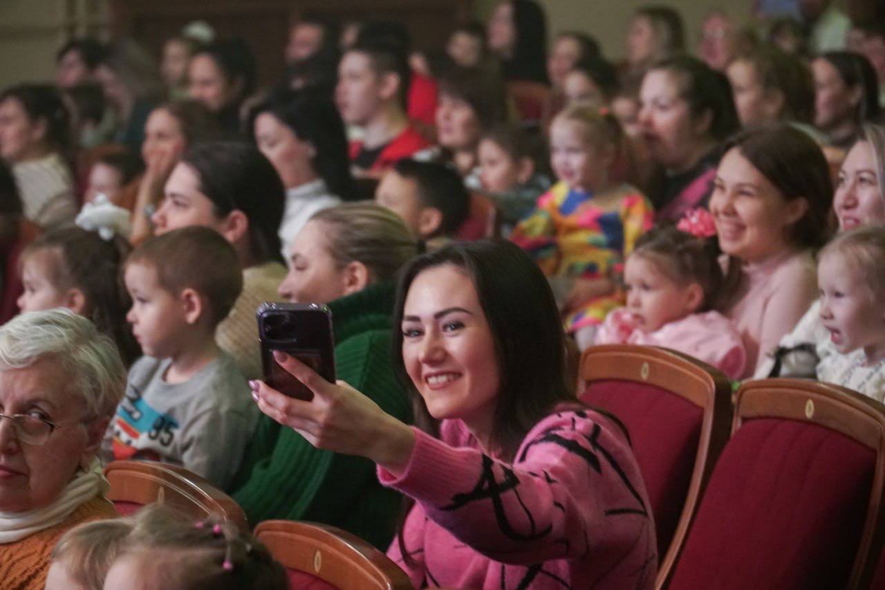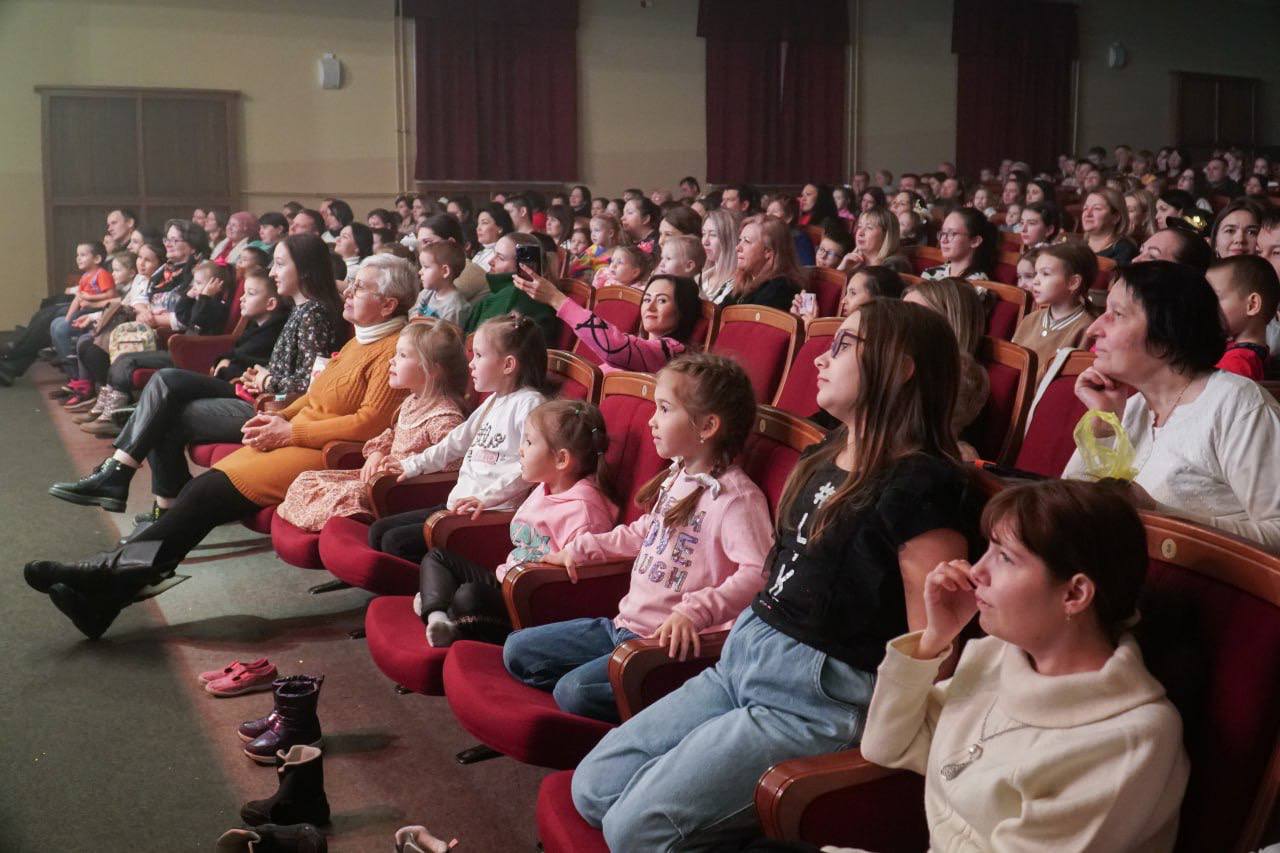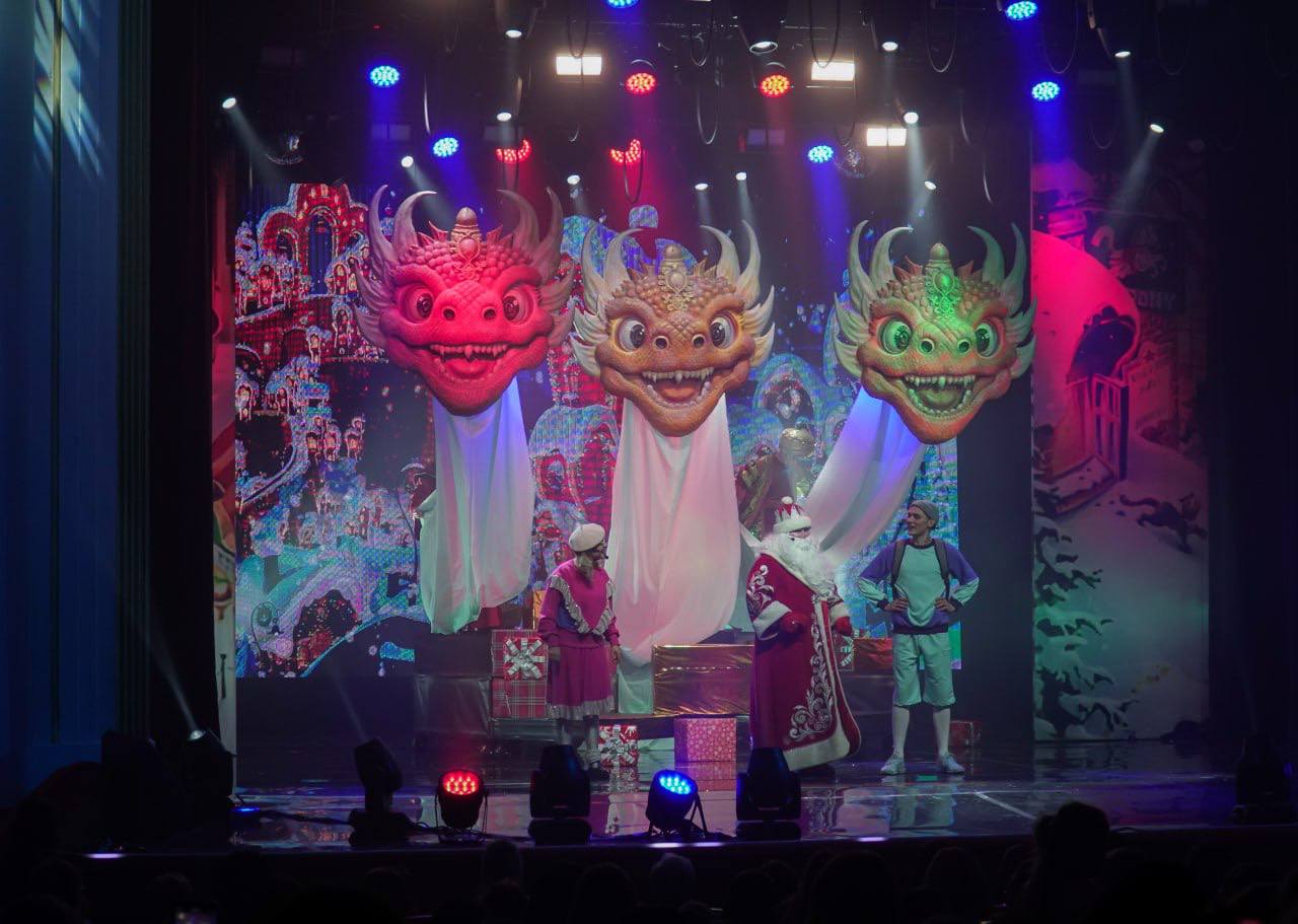 Юные зрители увидели театрализованное представление, в фойе маленьких гостей встречали Снегурочка и Дедушка Мороз с подарками, а также сказочные герои, аниматоры, призы и угощения.