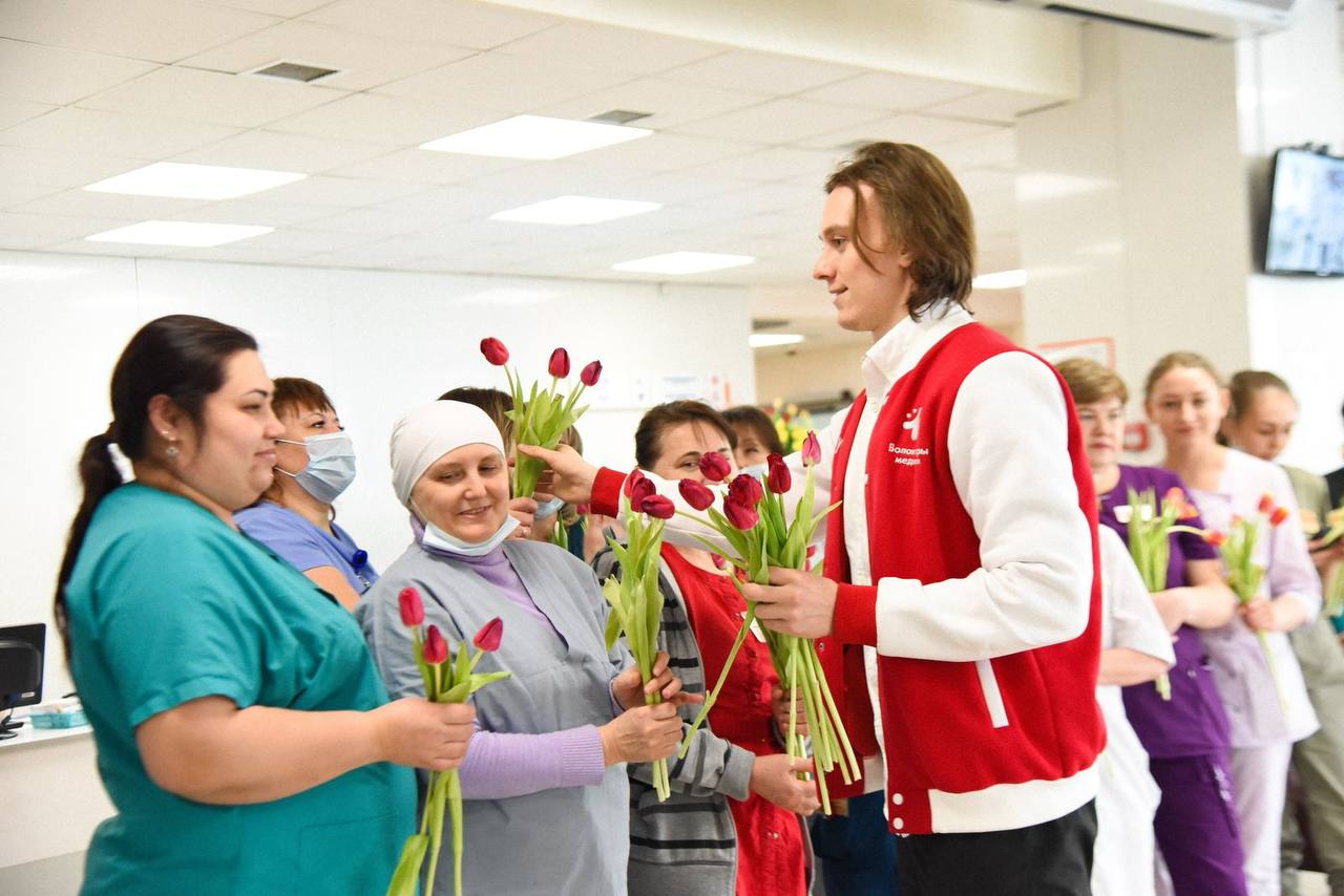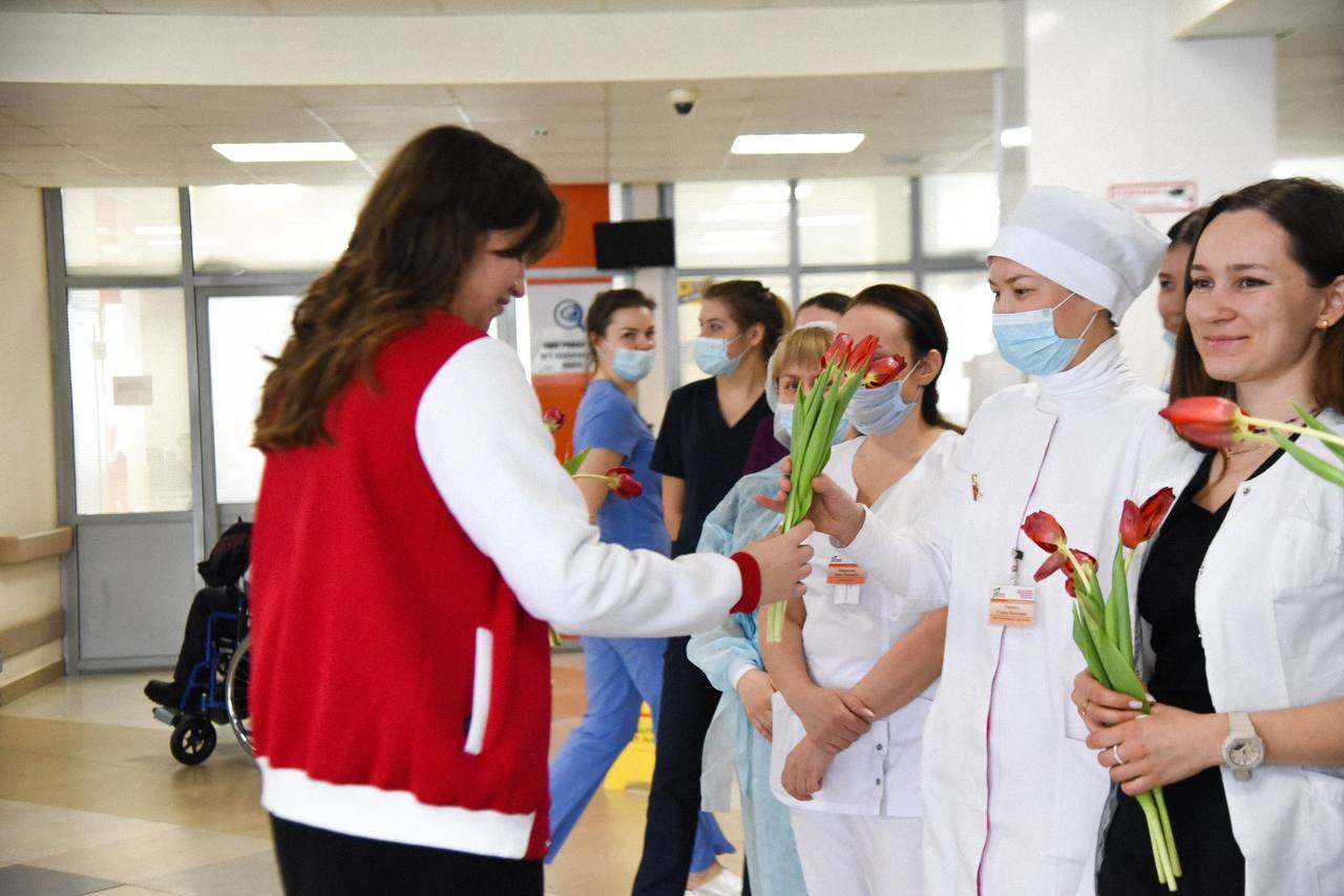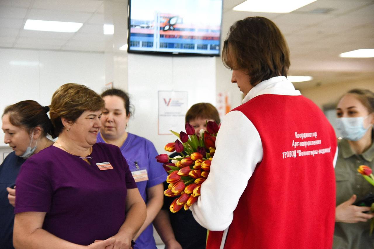 Волонтеры медики поздравили женский персонал клиники с 8 Марта