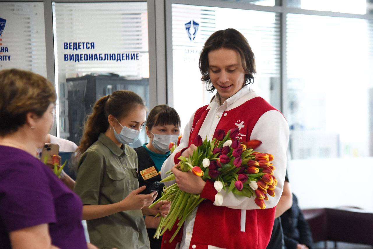 Волонтеры медики пришли поздравить персонал клиники с их самым нежным и добрым праздником, подарили им тюльпаны, сказали тёплые слова.