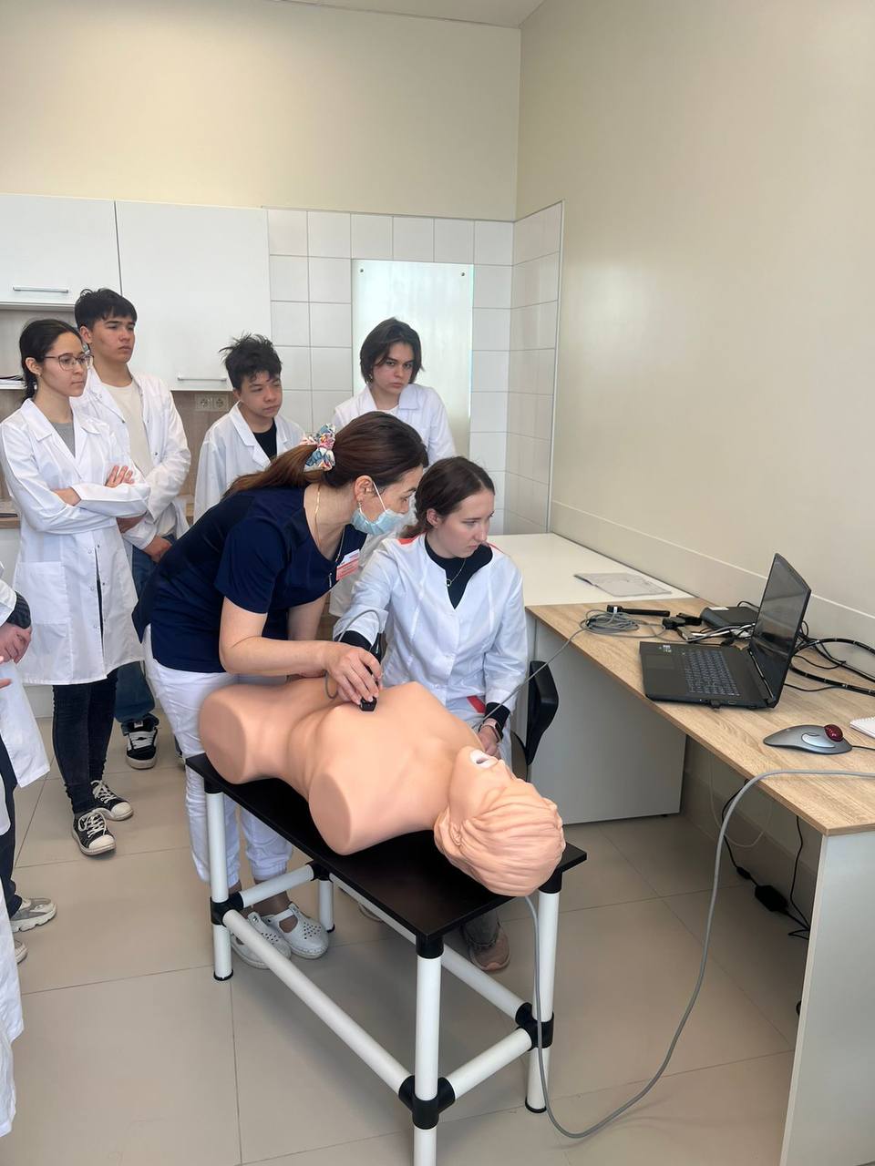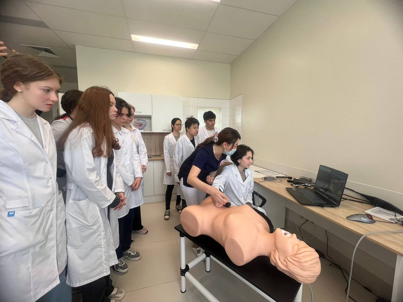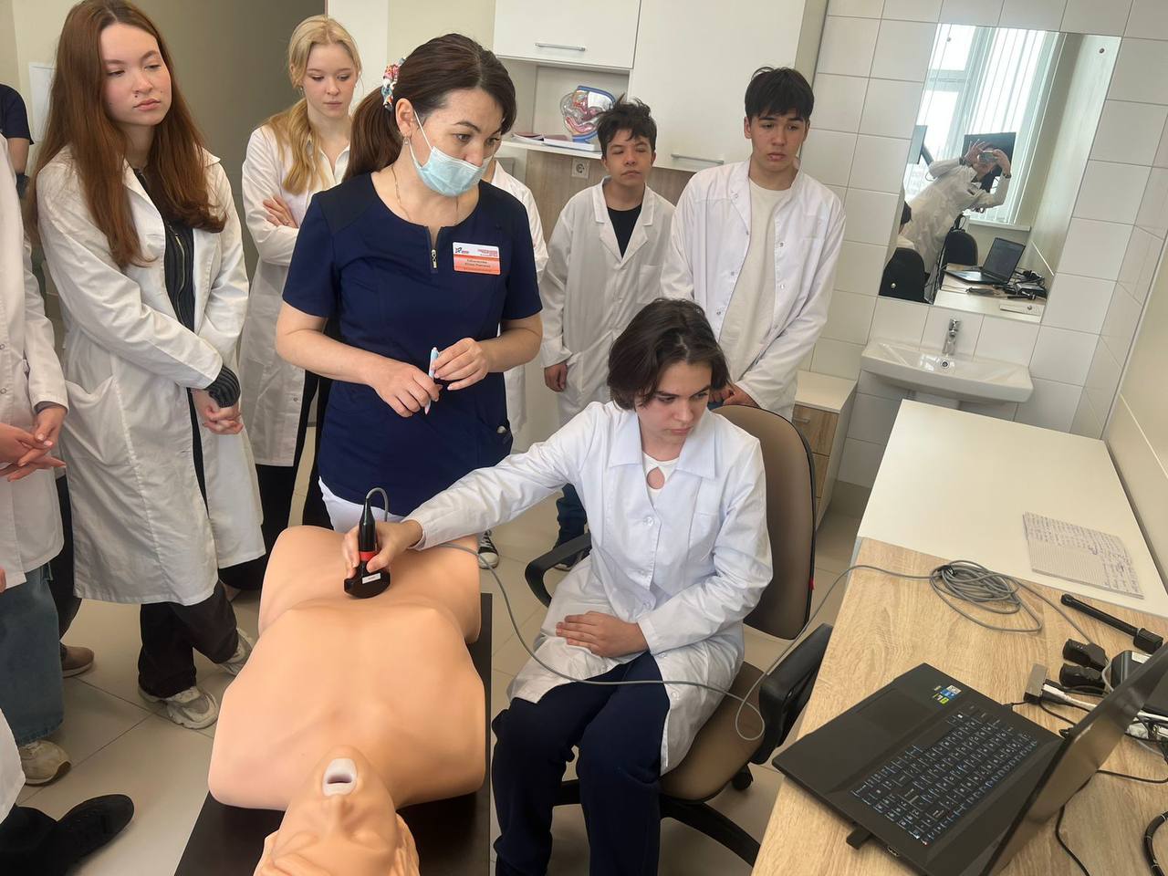 Ребята поближе познакомились с командой врачей Городской клинической больницы N7 им.М.Н. Садыкова, смогли поработать на симуляционных тренажерах на базе учебного класса - кстати, каждый имел возможность произвести манипуляции и виртуально поучаствовать в операции! - провели ультразвуковую диагностику, а также освоили базовые навыки сердечно-легочной реанимации.