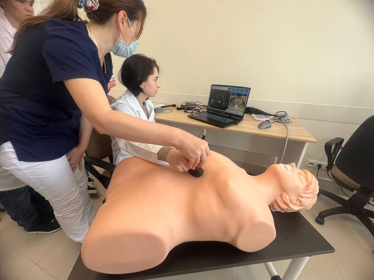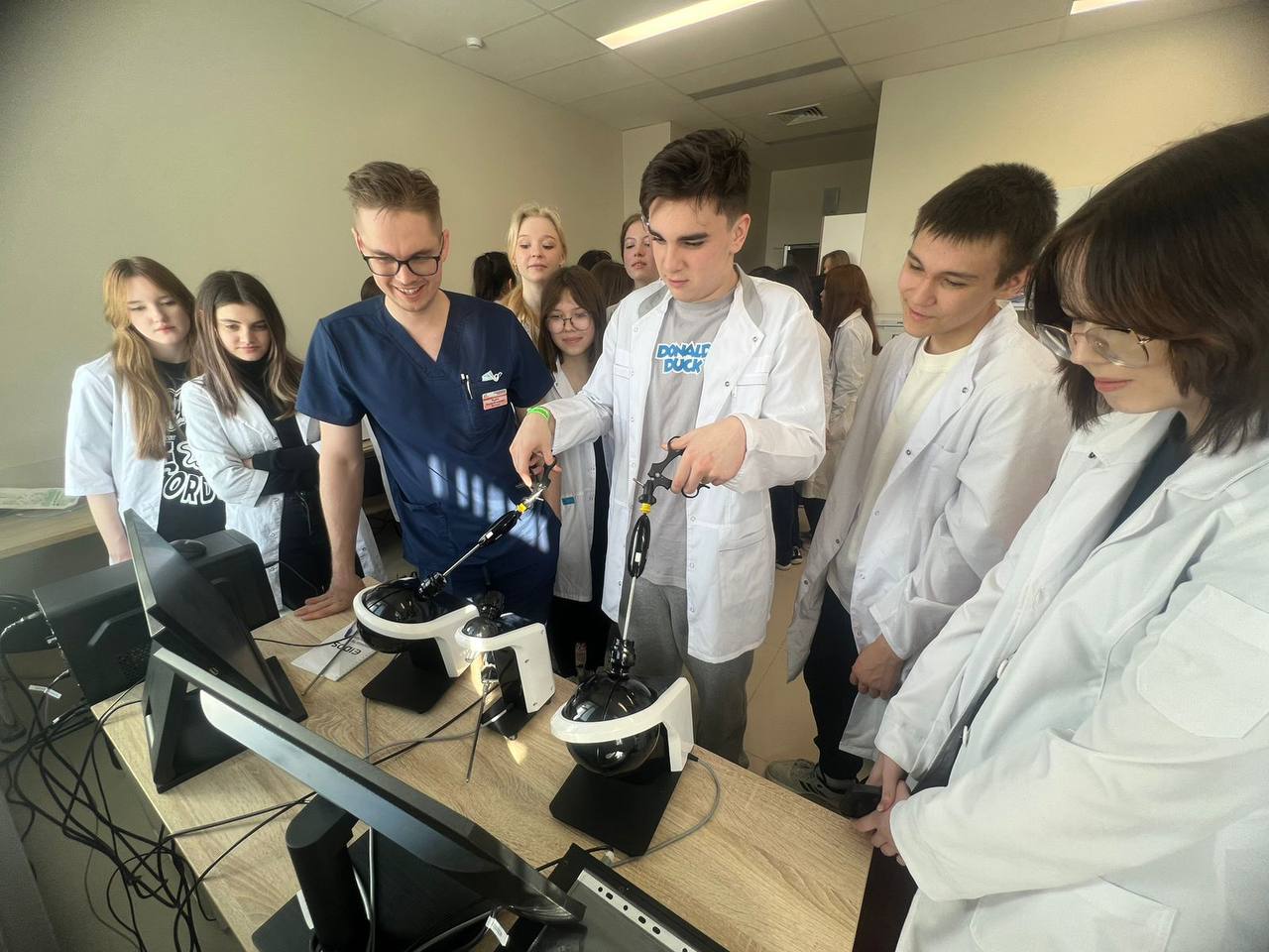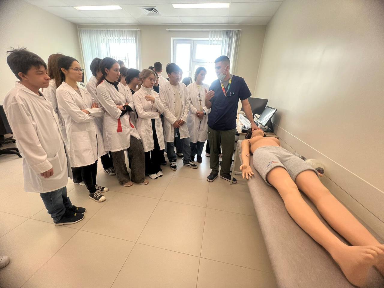 Ребята поближе познакомились с командой врачей Городской клинической больницы N7 им.М.Н. Садыкова, смогли поработать на симуляционных тренажерах на базе учебного класса - кстати, каждый имел возможность произвести манипуляции и виртуально поучаствовать в операции! - провели ультразвуковую диагностику, а также освоили базовые навыки сердечно-легочной реанимации.