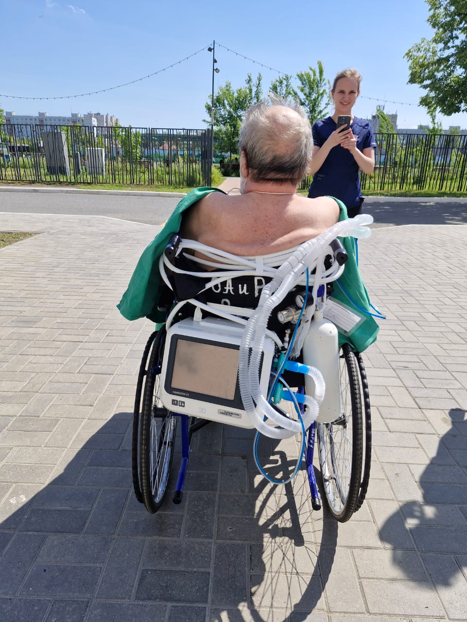 Пациент с ИВЛ впервые увидел голубое небо и реабилитационный парк