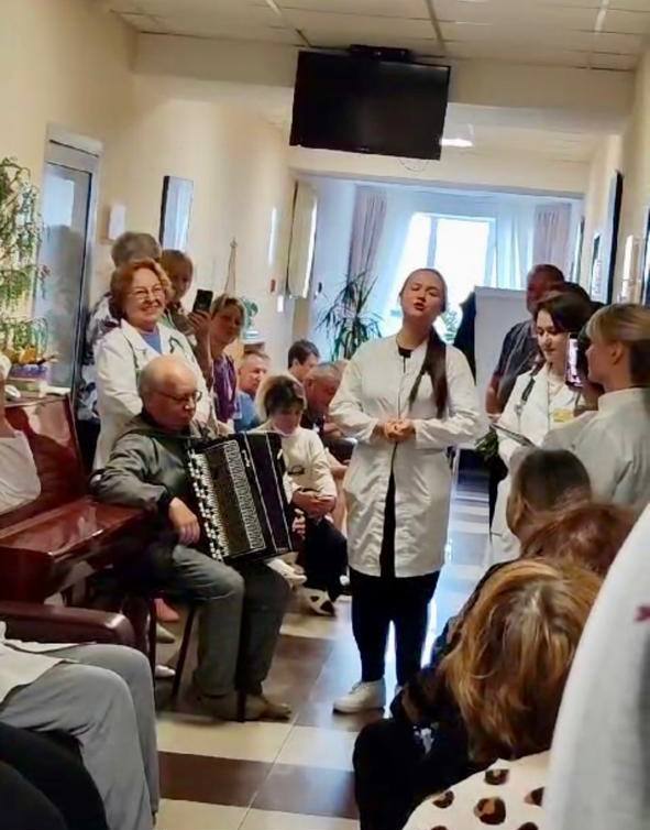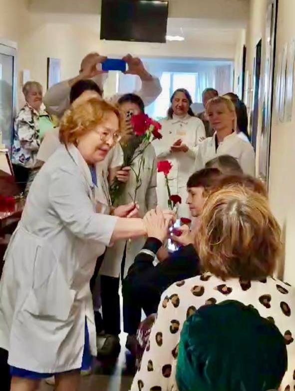 Душевные слова уважения к старшему поколению прозвучали и в стихах, и каждому пациенту 60+ подарили цветы! Приятно.