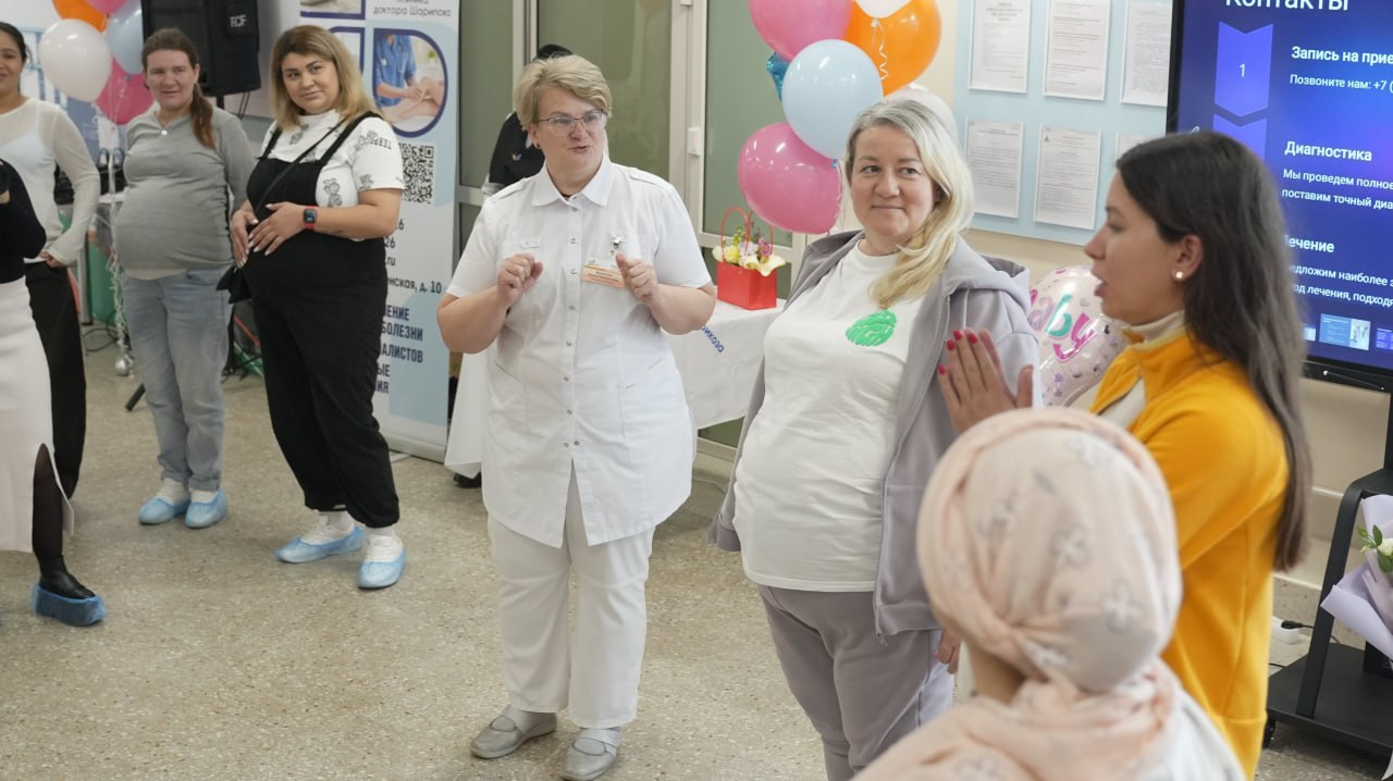 Все собравшиеся в фойе – пациентки Перинатального центра ГКБ 7 им.М.Н.Садыкова. Кому-то предстоит стать мамой через пару месяцев, а кому-то – уже на днях. Впрочем, даже самым округлым виновницам торжества интересное положение не помешало зарядиться положительными эмоциями.