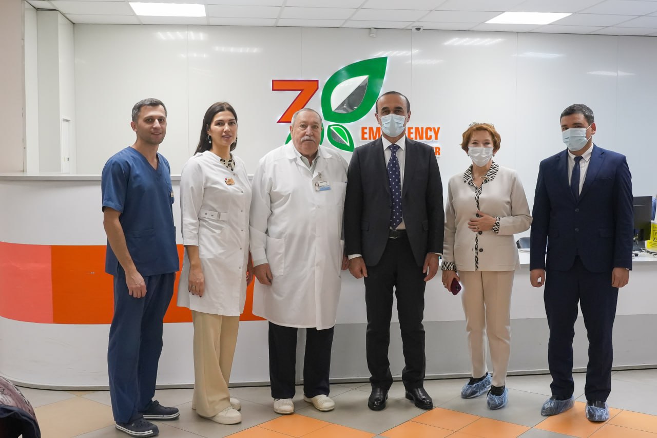 Гости из Узбекистана ознакомились с работой больницы, в том числе увидели маршрутизацию пациентов в приемно-диагностическом отделении, поучаствовали в планерке отделения челюстно-лицевой хирургии, посетили лечебно – реабилитационный центр и другие службы клиники.