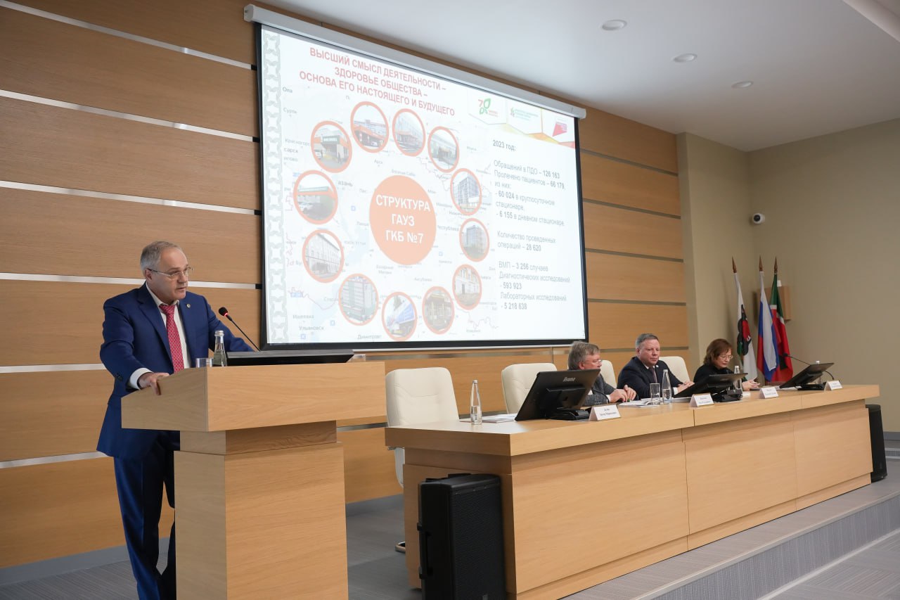 Главный врач клиники Артур Маркосович Делян представил опыт внедрения требований к организации и проведению внутреннего контроля качества и безопасности медицинской деятельности в ГАУЗ ГКБ No7 им. М.Н. Садыкова г. Казани, а заместитель главного врача по акушерству и гинекологии Татьяна Николаевна Шигабутдинова рассказала о возможностях акушерско-гинекологической службы многопрофильной больницы, представив новую модель Перинатального центра.