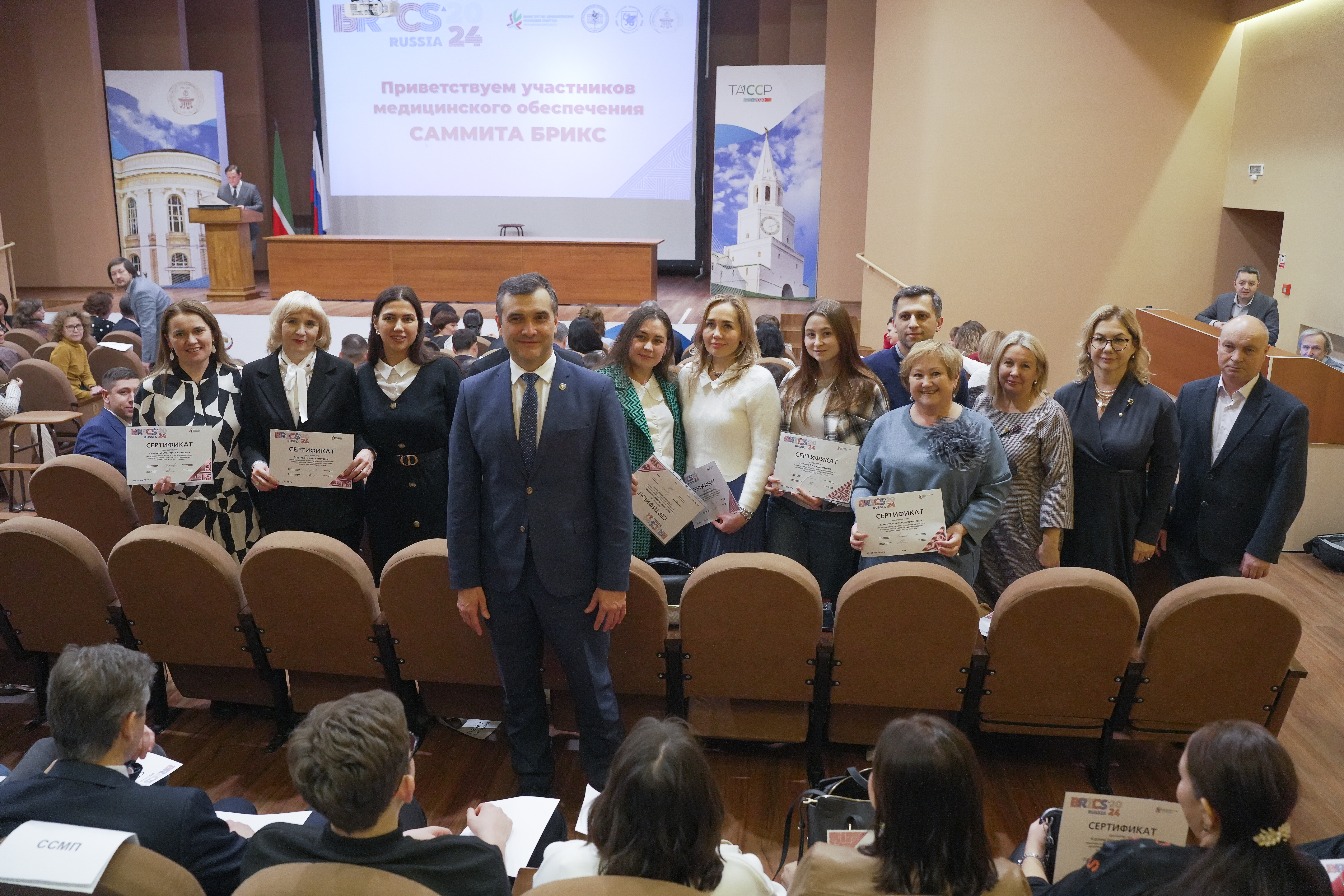 Минздрав Татарстана торжественно вручил сертификаты медицинским работникам, принявшим участие в медицинском обеспечении XVI Саммита БРИКС в Казани.