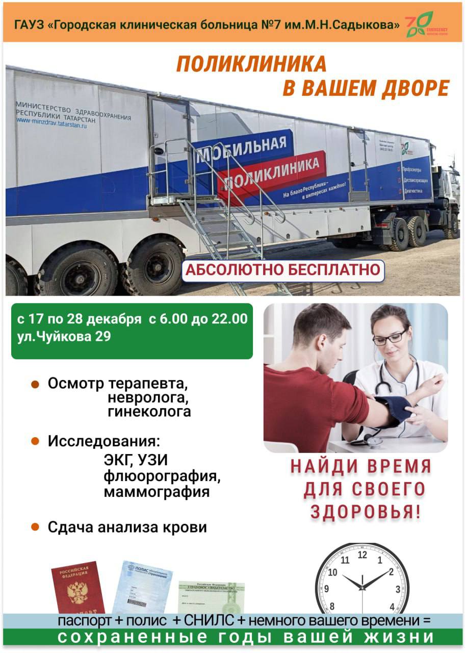 Мобильная поликлиника ГКБ№7 им. М.Н. Садыкова продолжает работу в Казани.