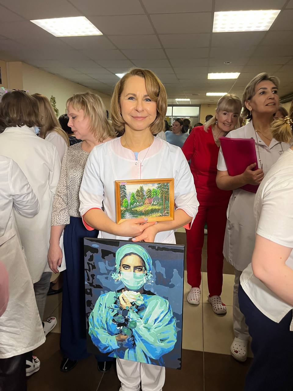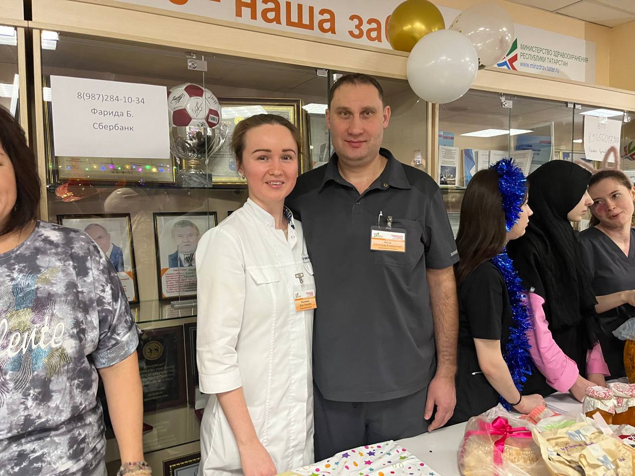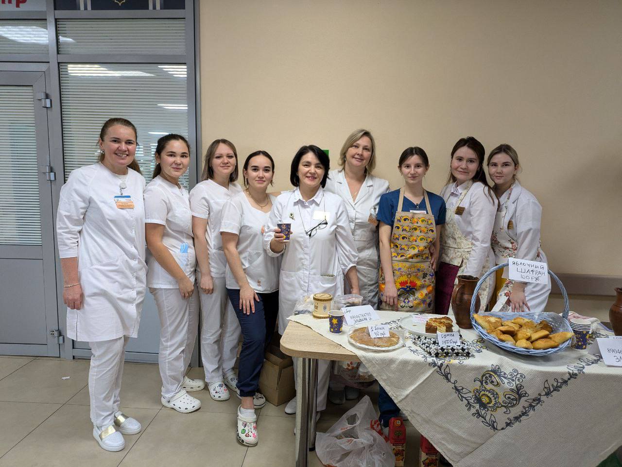 С раннего утра фойе клиники украсили столы с угощениями и поделками, выполненными руками медиков.