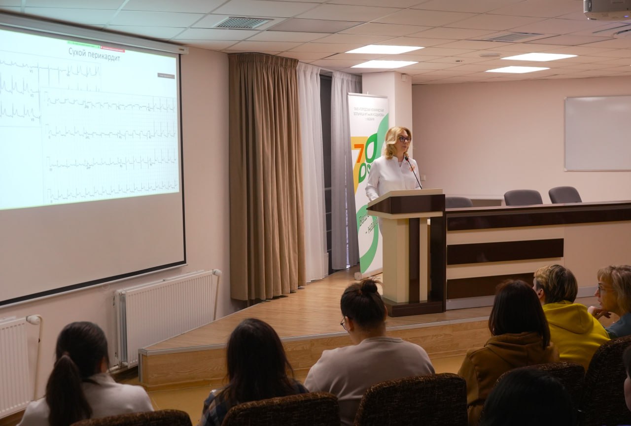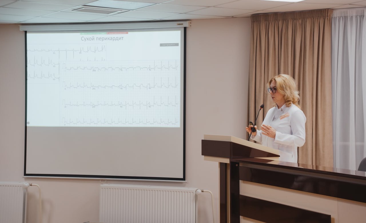 Сотрудники станции скорой медицинской помощи совместно с заместителем главного врача по медицинской части Зульфией Фаритовной Ким подробно изучают тему «Острый коронарный синдром с подъемом сегмента ST и его осложнения».
