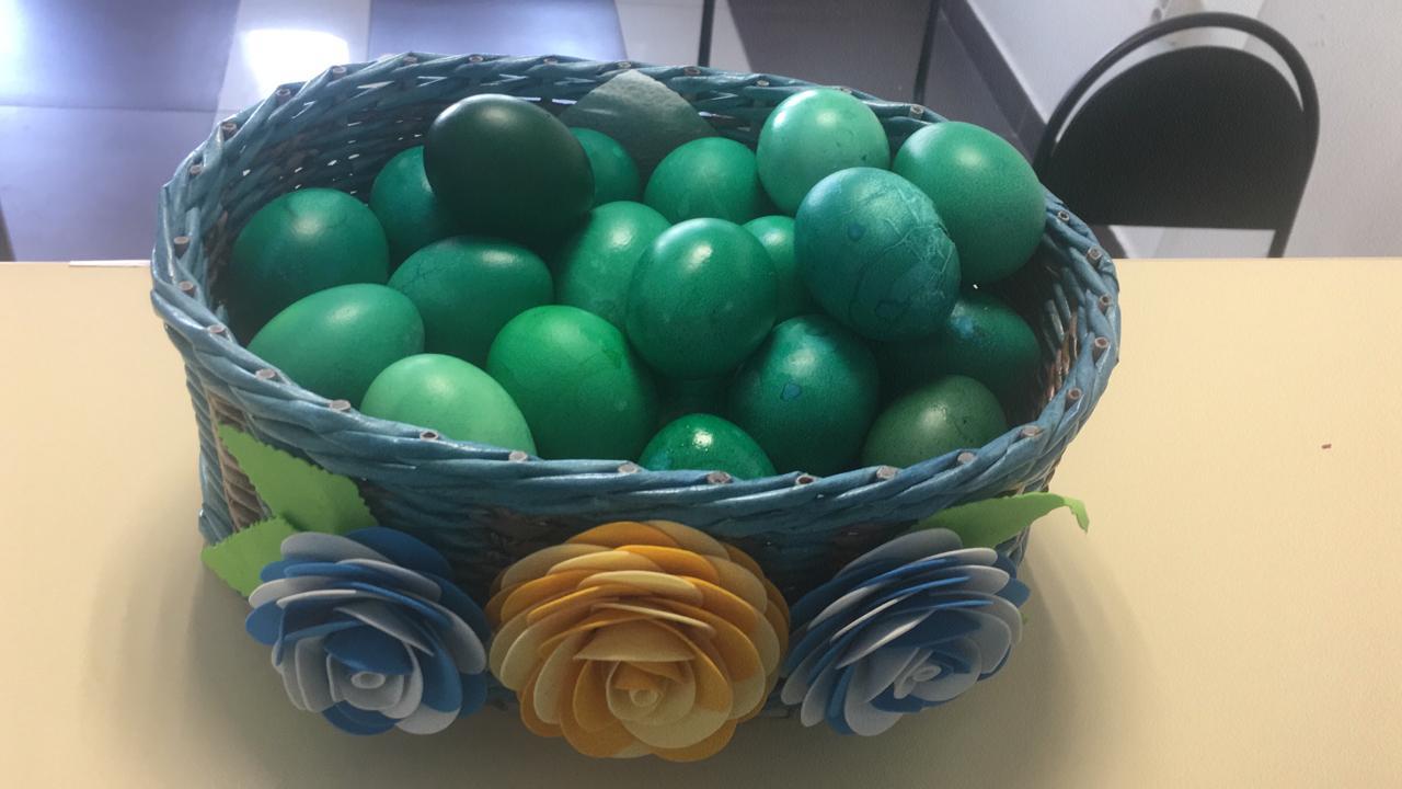 В инфекционном госпитале Городской клинической больницы оживление. Старшая медицинская сестра госпиталя Светлана Лопатина привезла медикам и пациентам пасхальные яйца, и не обычные — зеленого цвета!