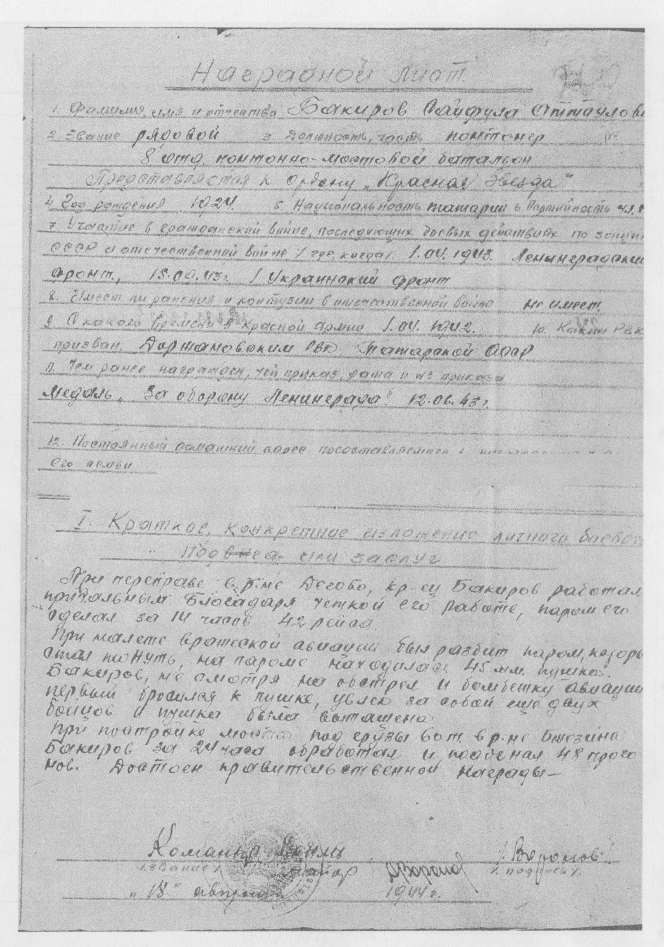 К 75-летию Великой Победы. Сайфулла Атауллович Бакиров