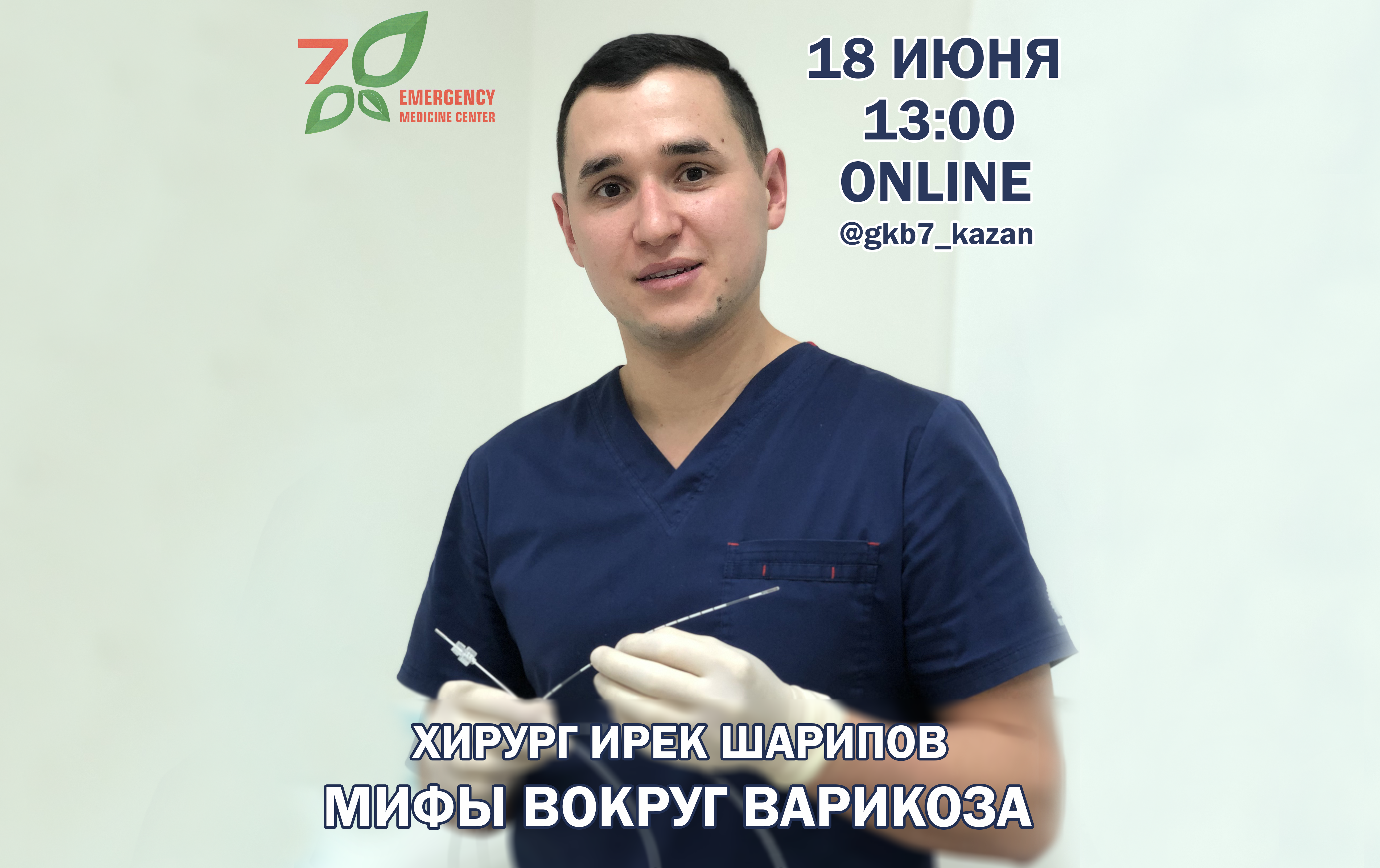 18 июня в 13.00 на Instagram- площадке @gkb7_kazan хирург - флеболог Городской клинической больницы №7 Казани Ирек Рафилович Шарипов развеет мифы вокруг варикоза, ответит на вопросы подписчиков. Задавайте вопросы прямо сейчас - в комментариях, отправляйте в direct - ответы на них услышите, что называется, «из первых уст» - в прямом эфире 18 июня в 13.00. До встречи!